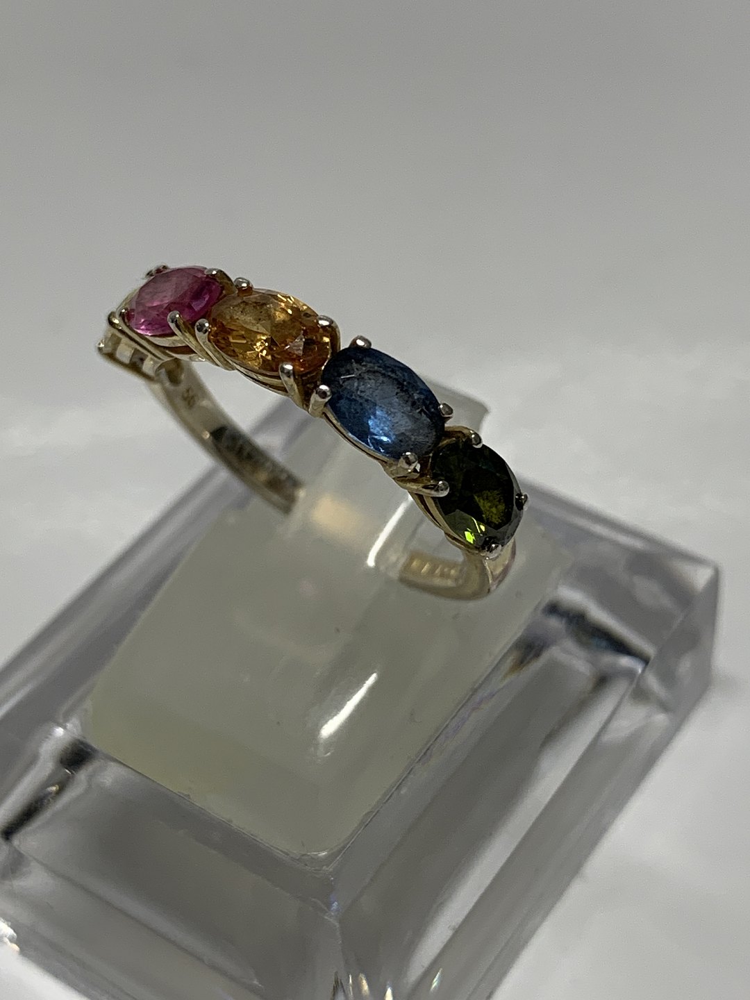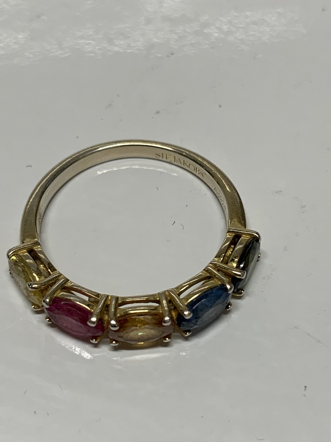 Sølv ring med farvet zirkoner forgyldt med 18 karat guld