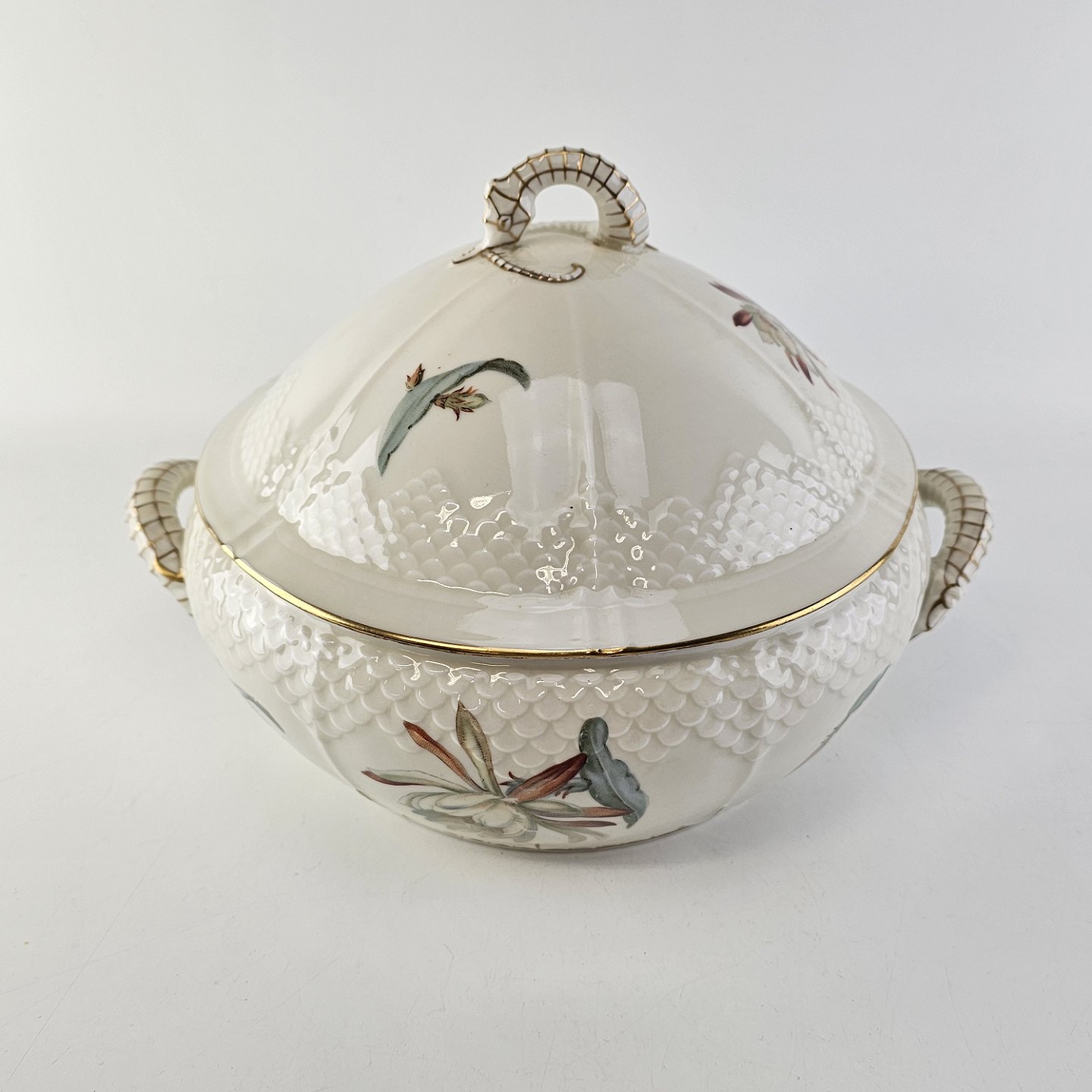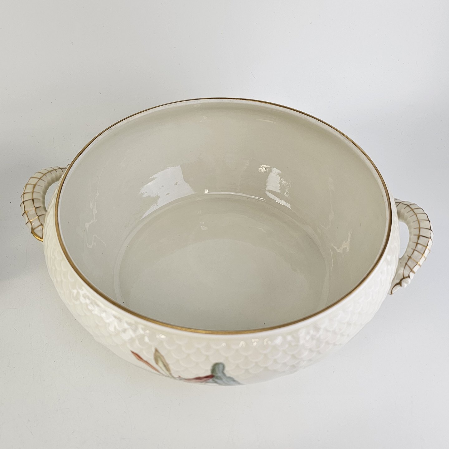 Kaktus er cremefarvet porcelæn i skælform, dekoreret med kaktusblomster og guldkant