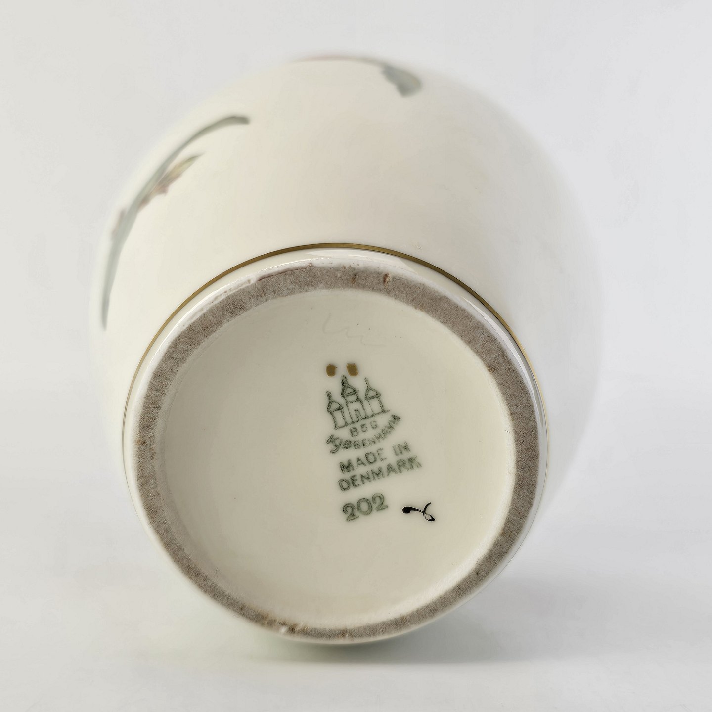 Kaktus er cremefarvet porcelæn i skælform, dekoreret med kaktusblomster og guldkant