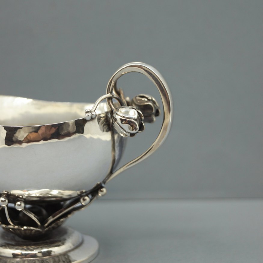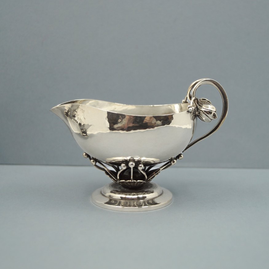 Flødekande Georg Jensen dessin nr 235 A. H. 7 cm. L. 10,6 cm.