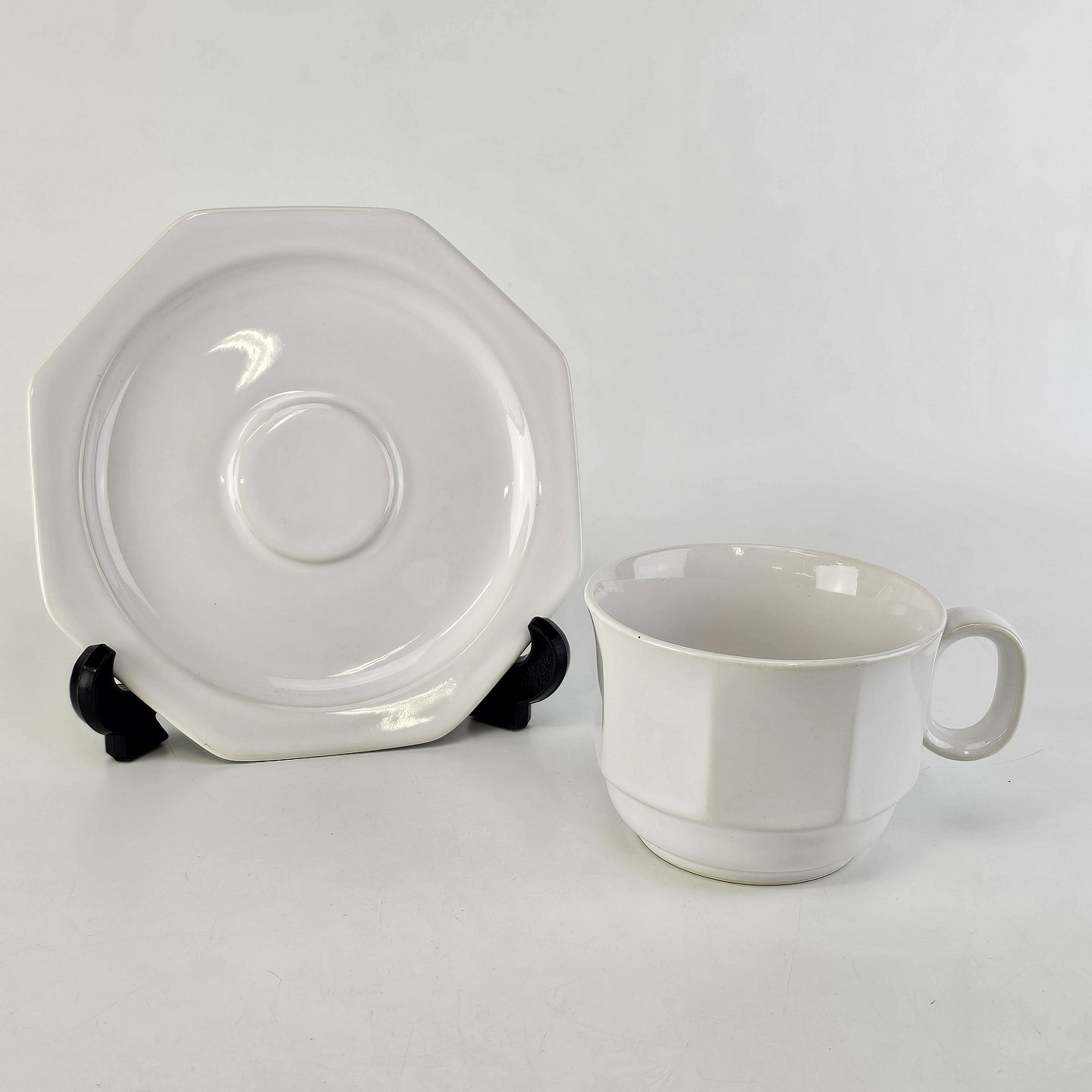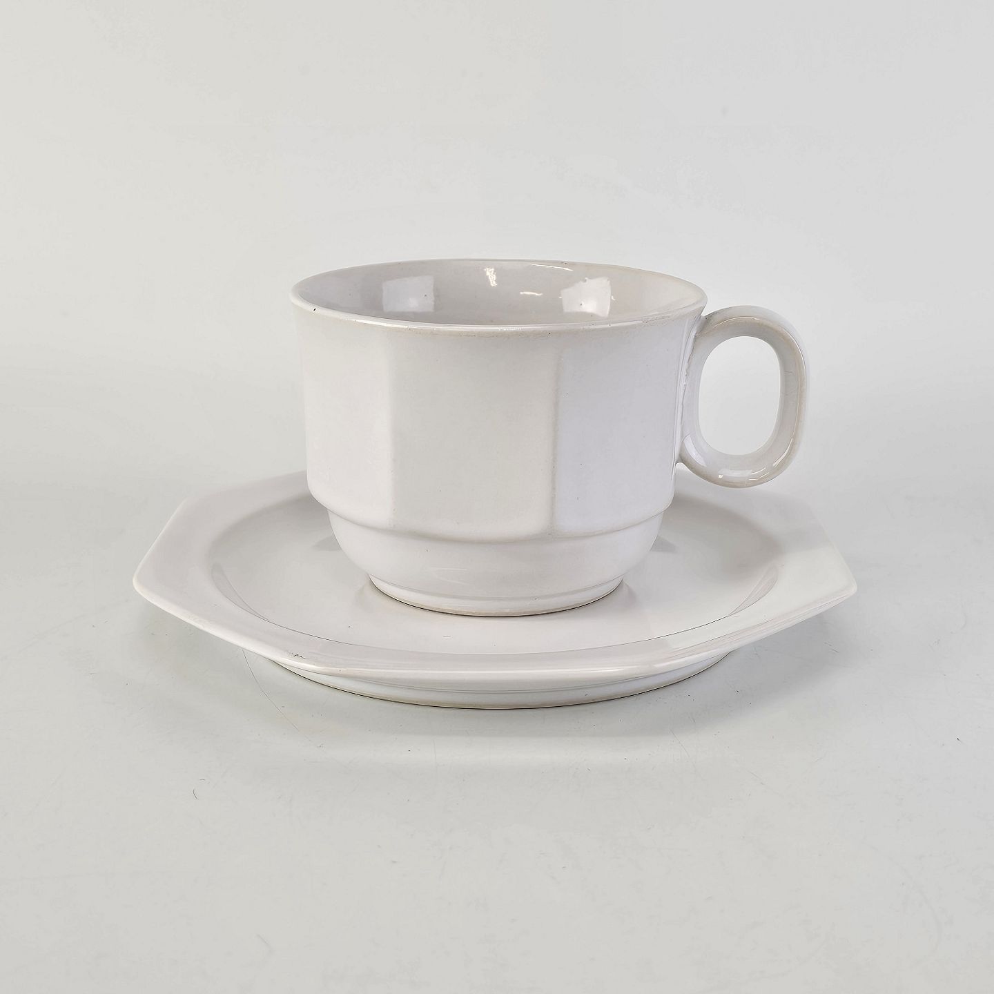 Stellet er i glaseret, kantet stentøj og findes i både sort og hvid