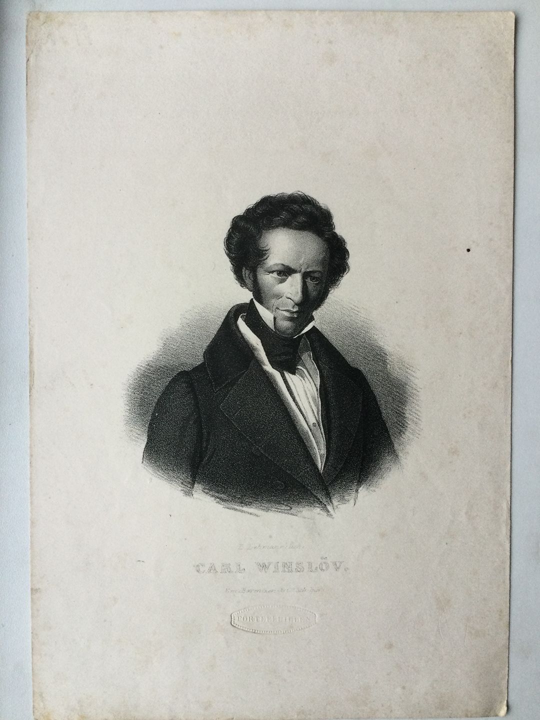 Litografi af Edvard Lehmann - Portræt af Kongelig Skuespiller Carl Winsløw.