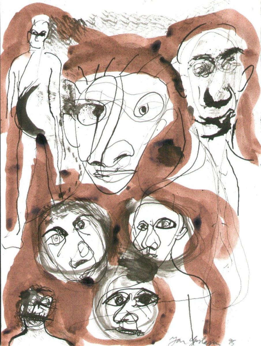 Gislason, Jon (1955-). Komposition. Akvarel og tusch på papir. Sign. Jon Gislason 95. 32,5 x 24,5 cm.