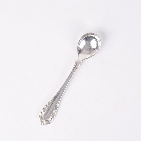Saltske i sølv fra Georg Jensen, udført i det elegante Liljekonval (Lily of the Valley) mønster. Skeen er stemplet og udformet med bløde linjer og naturlige blomsterdetaljer, der kendetegner Georg Jensens organiske designstil.