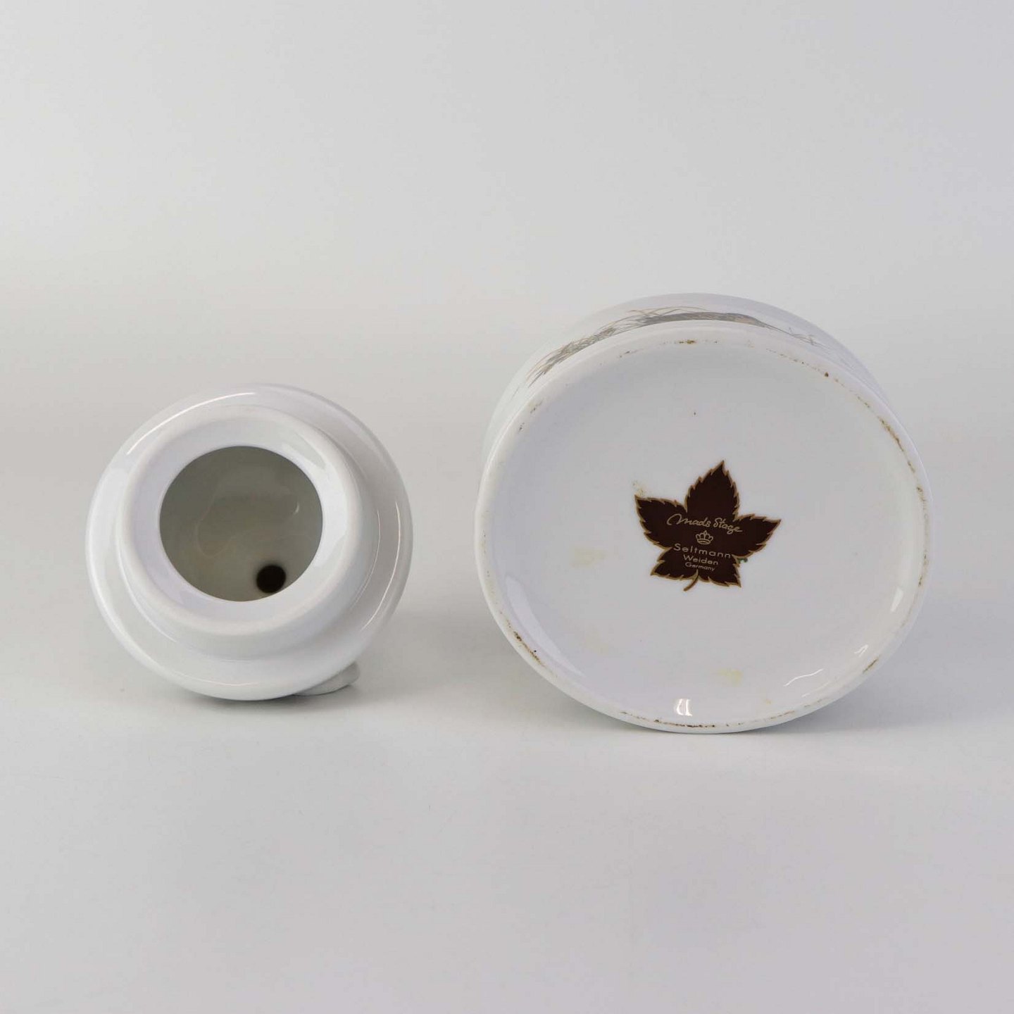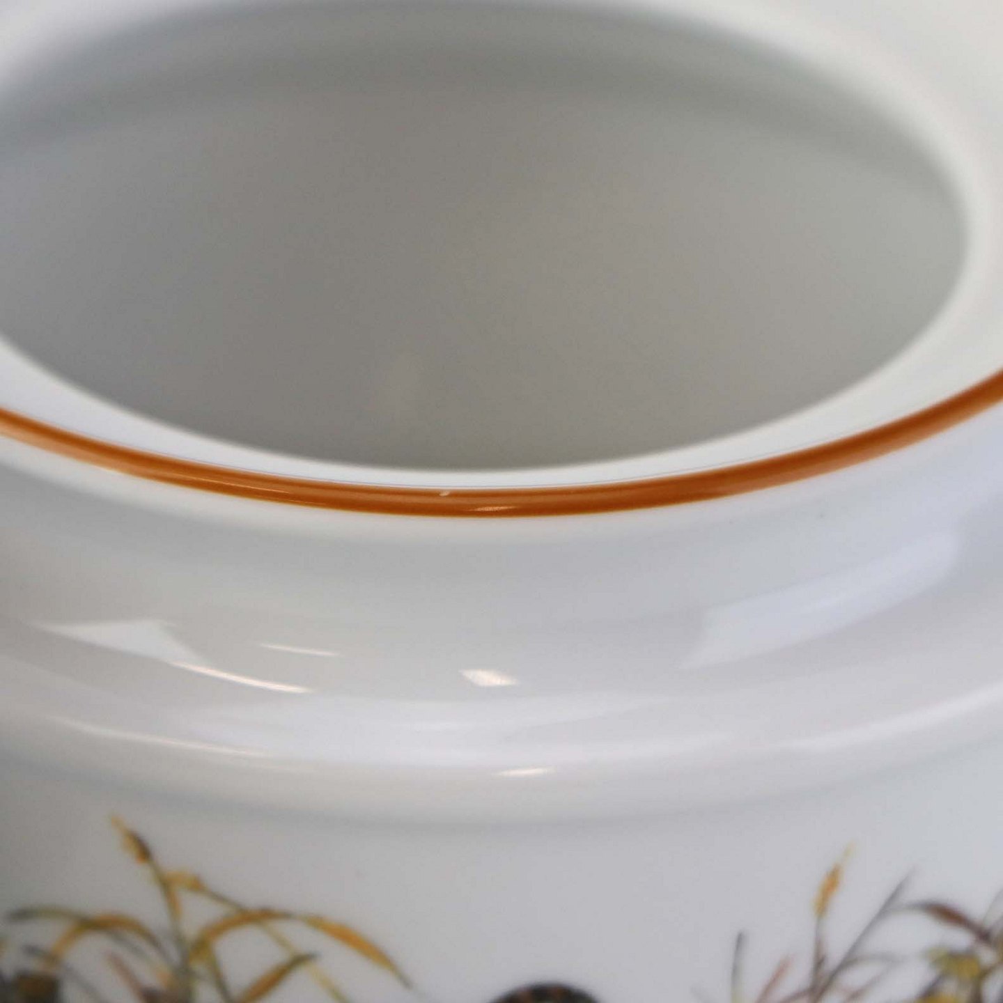 Lågkrukke til sukker i porcelæn med motiv af en sneppe fra stellet Jagtstel.