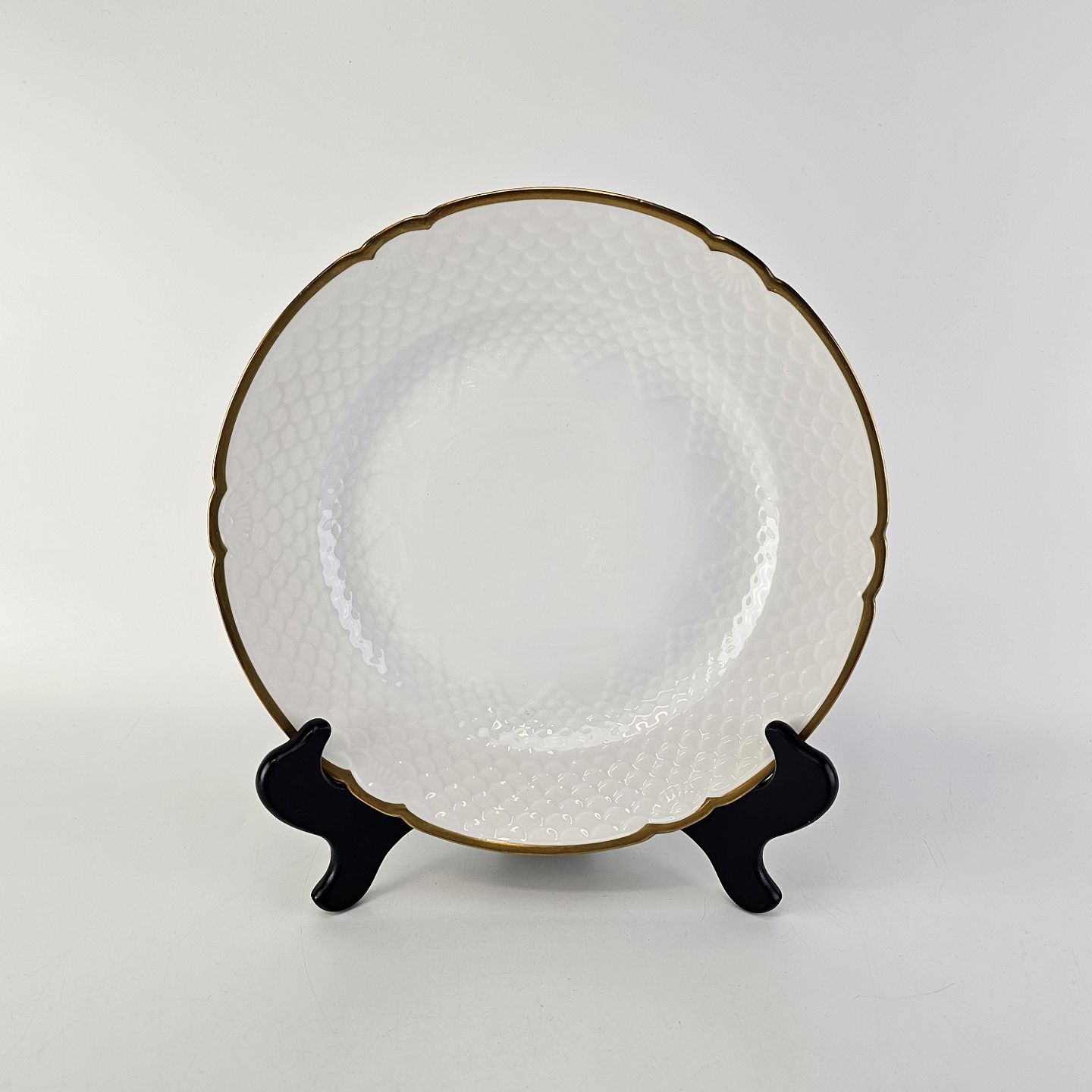 Hostrup er hvidt porcelæn i skælform med guldkant