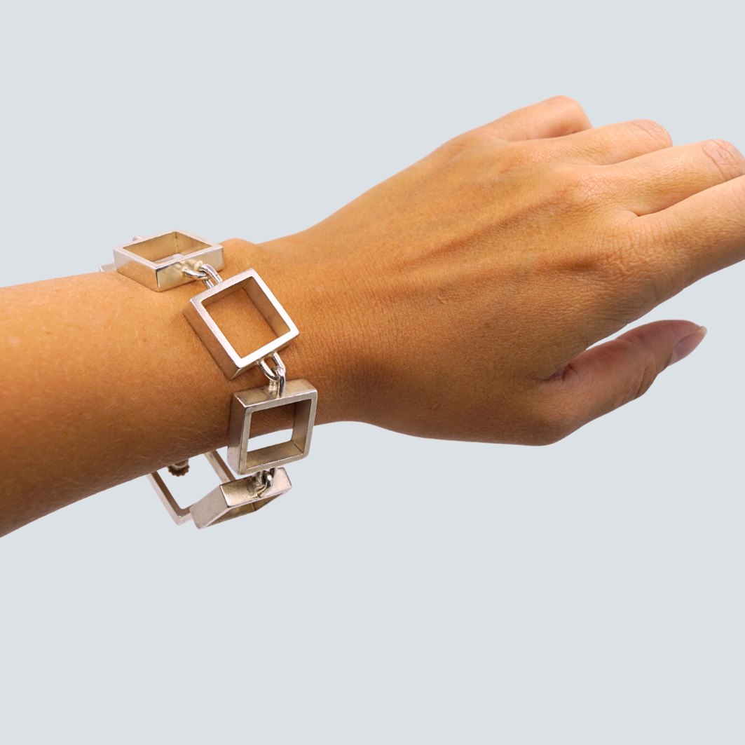 Hans Hansen; Armbånd af sterling sølv. Med firkantet led. Ca. fra 1960. Lås med skrue. L. 20,5 cm. B. 2 cm.