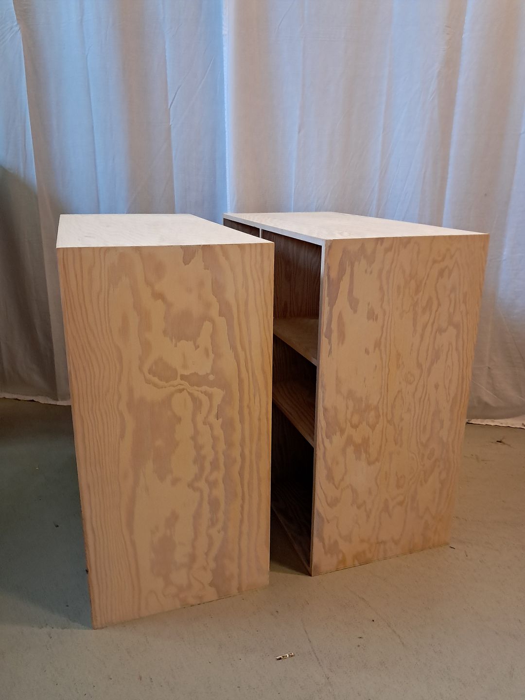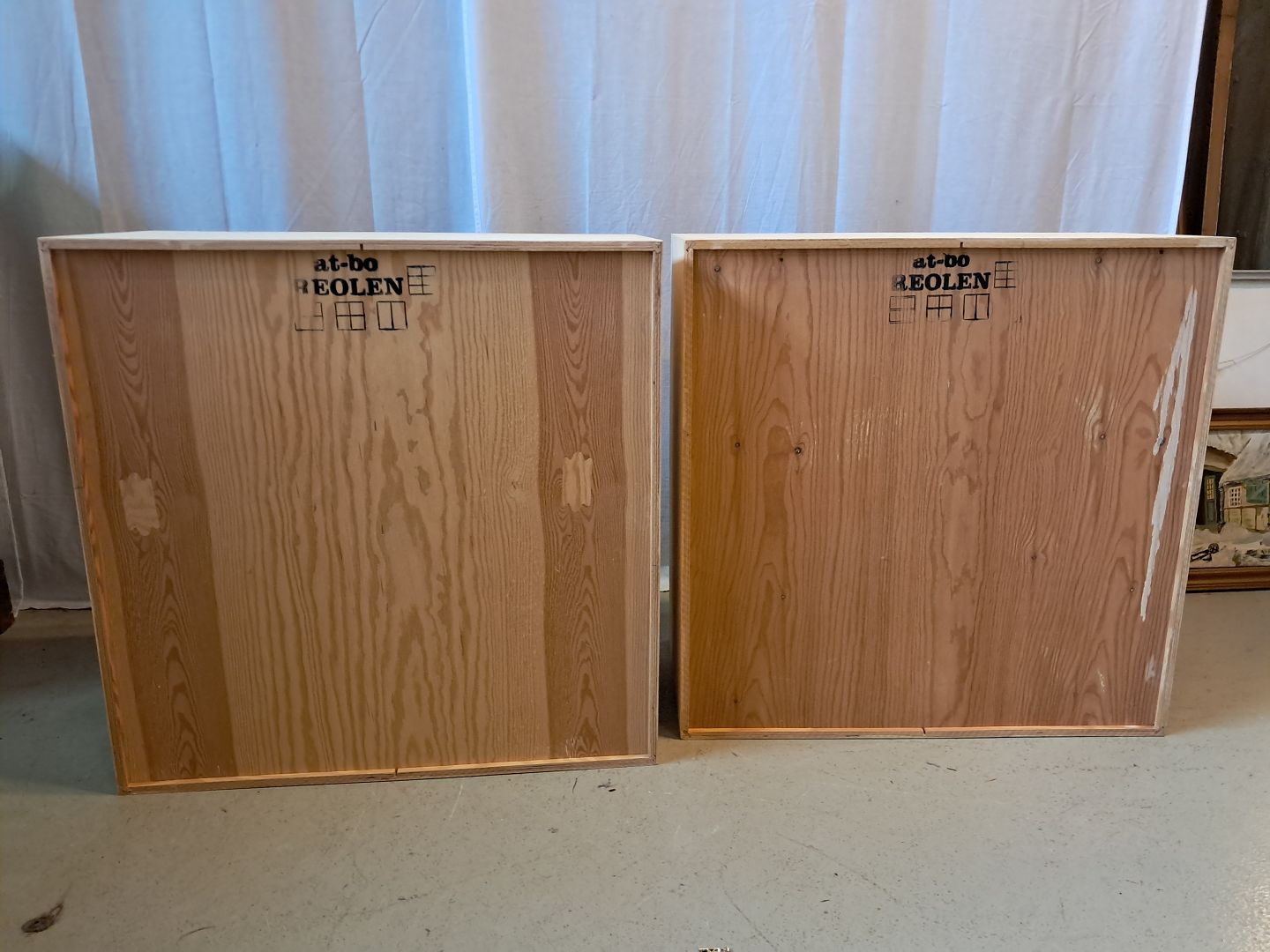 2 At-Bo reolkasser i krydsfiner, fra 2000erne.