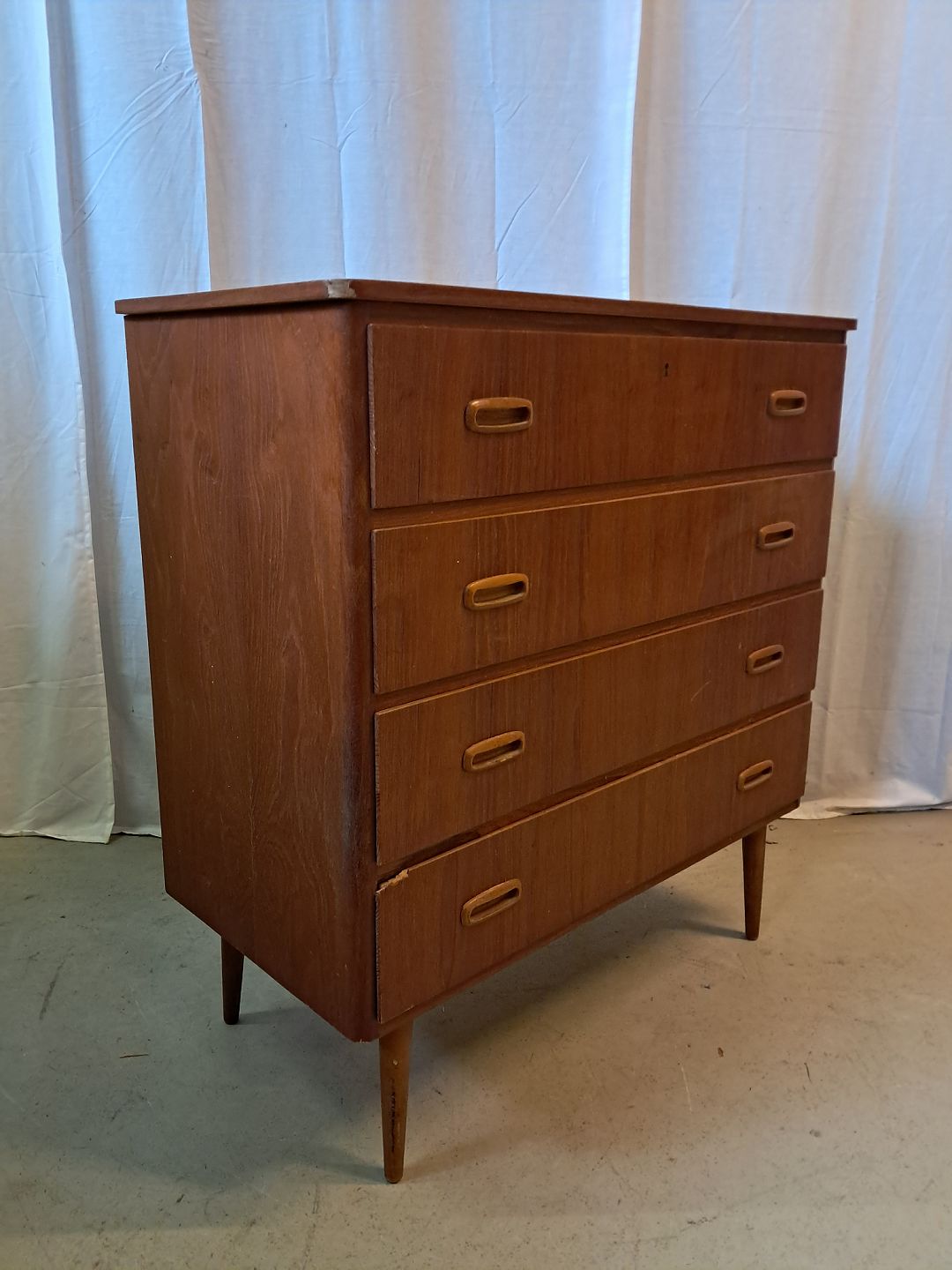 Kommode i fineret teaktræ, fra 1960erne.