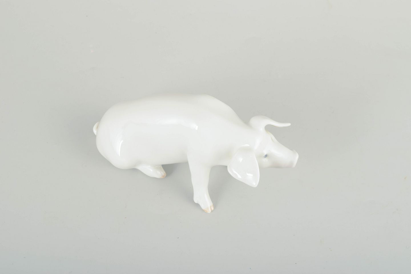 Naturalistisk figur af gris i hvidglaseret porcelæn.