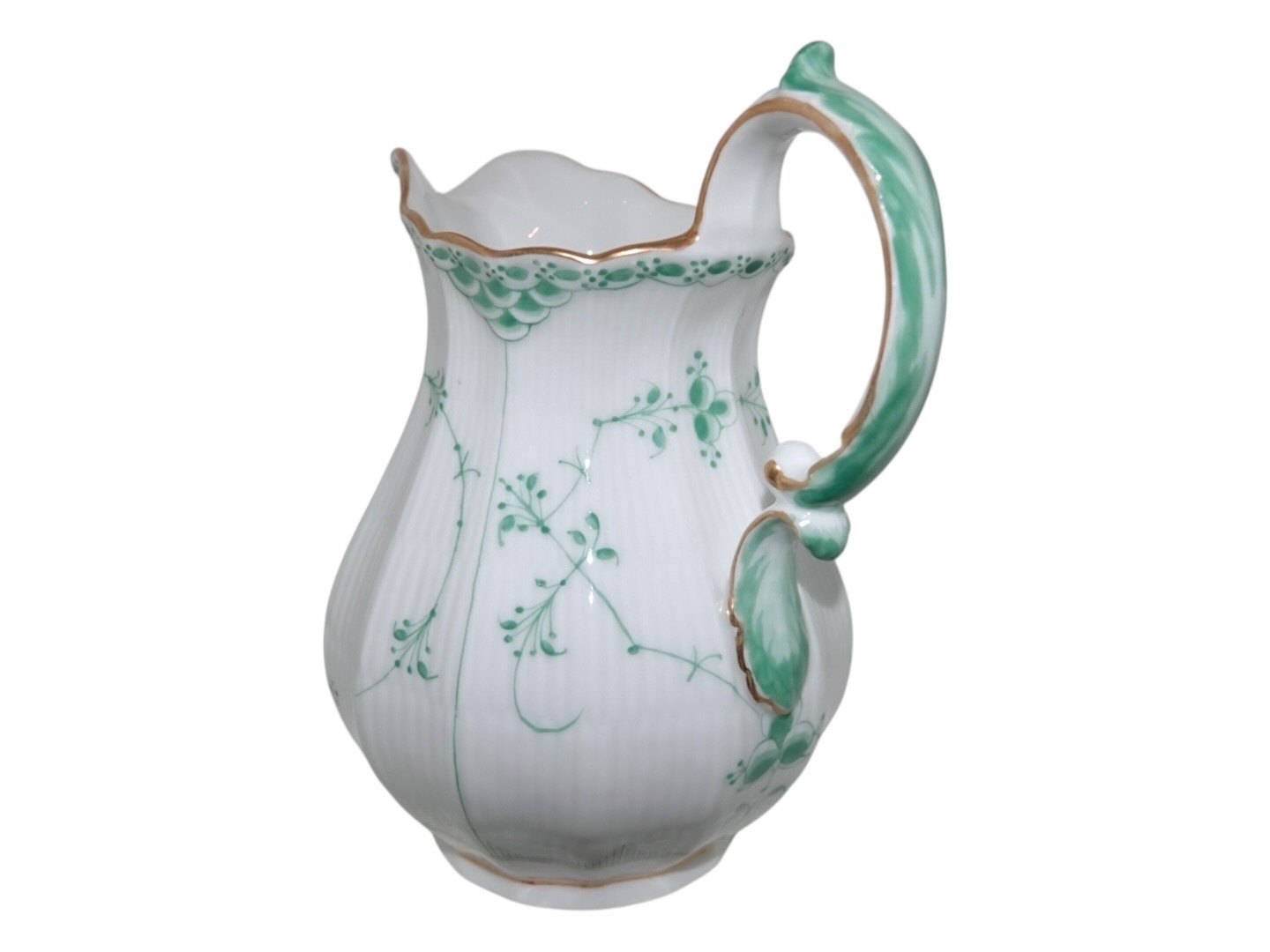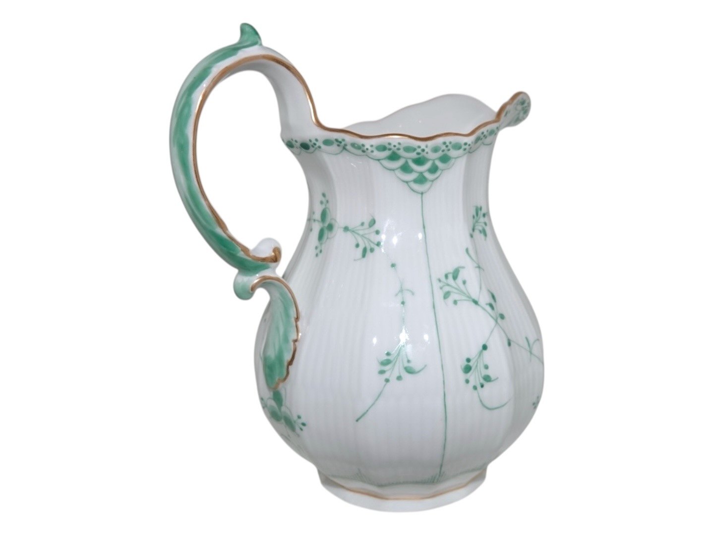 Royal Copenhagen Grøn Musselmalet Halvblonde med guldkant, mælkekande.