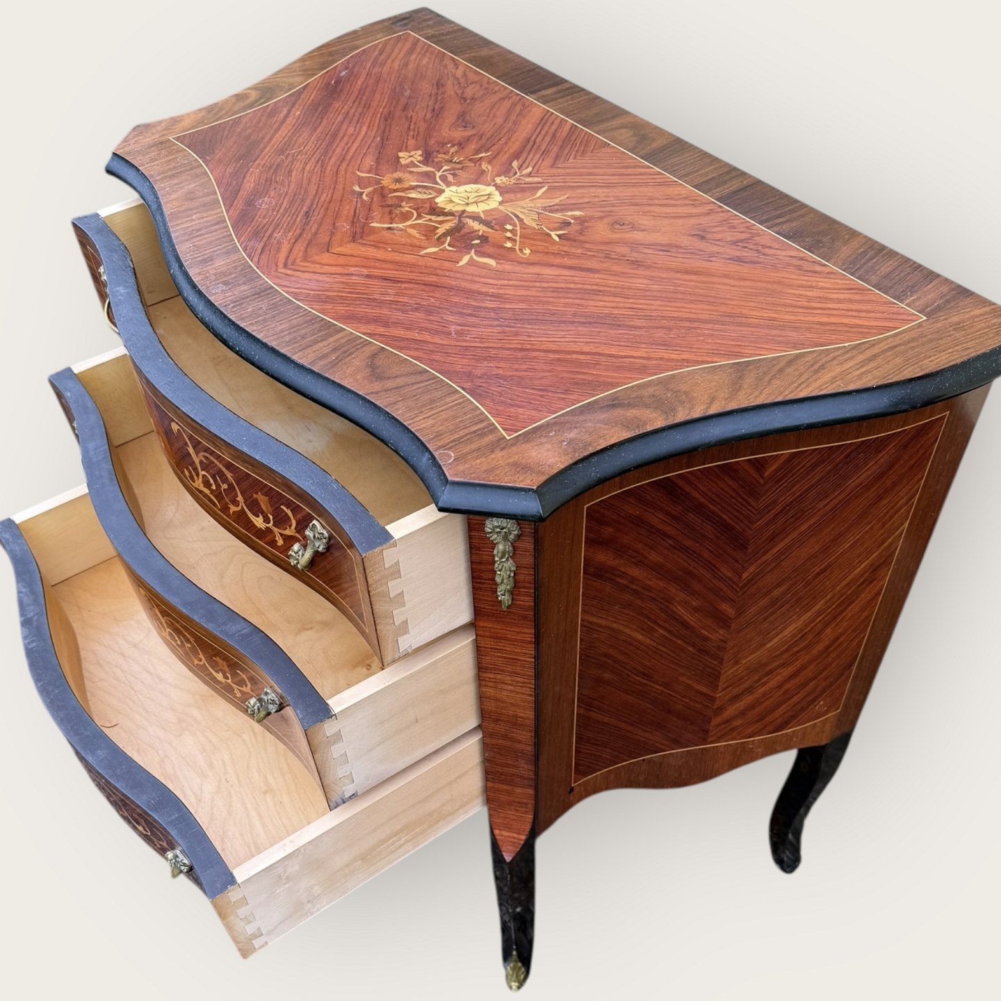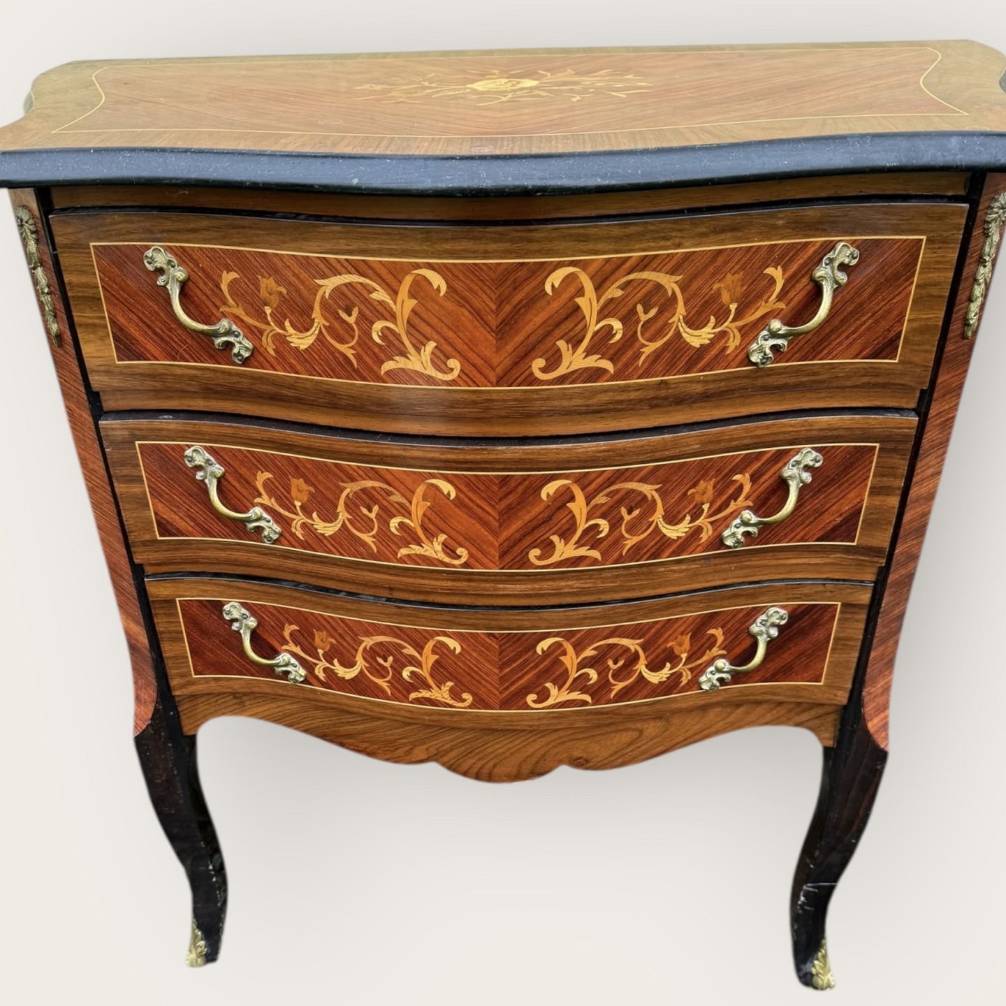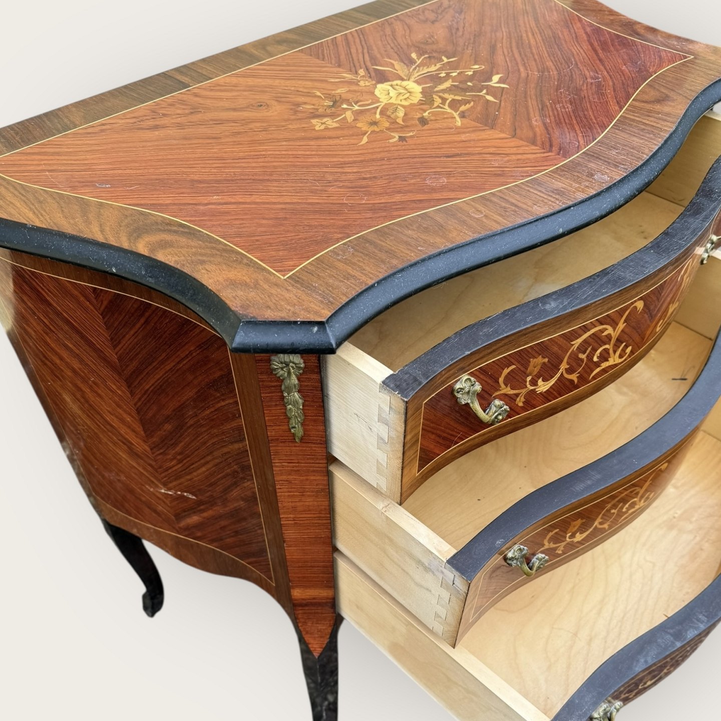 Kommode med intarsia, 3 skuffer, nogle brugsspor, Mål: HxBxD 68x70x39cm