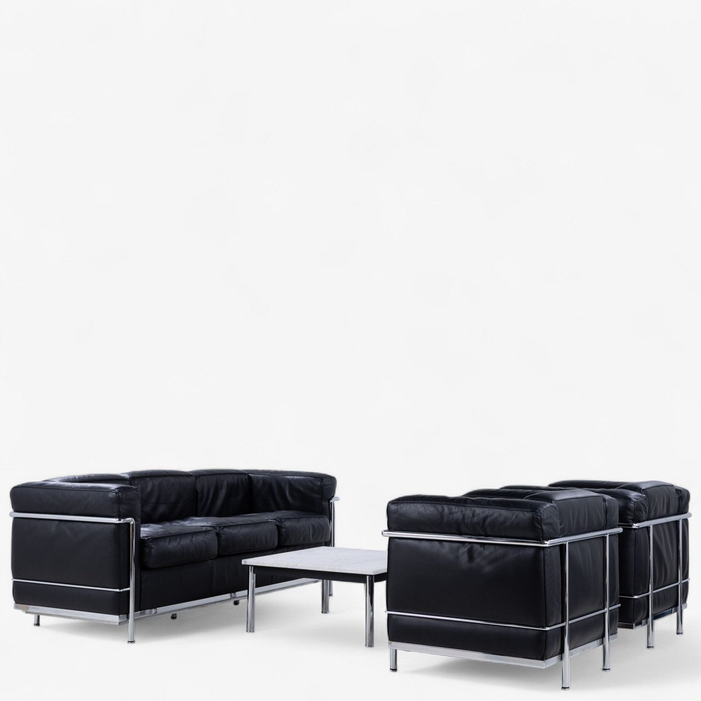 LC 2/3 - 3. pers sofa i originalt sort læder med stel i stål. Stemplet fra producent.