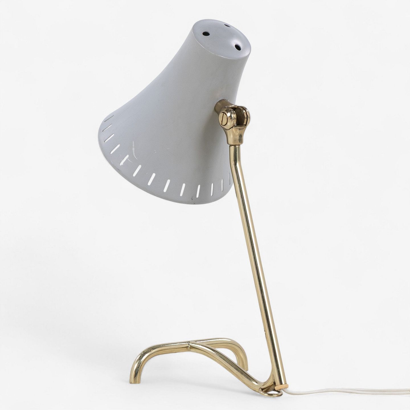 Model 8256 - Bordlampe med stel i messing og skærm i grålakeret metal. Fra 1950'erne.