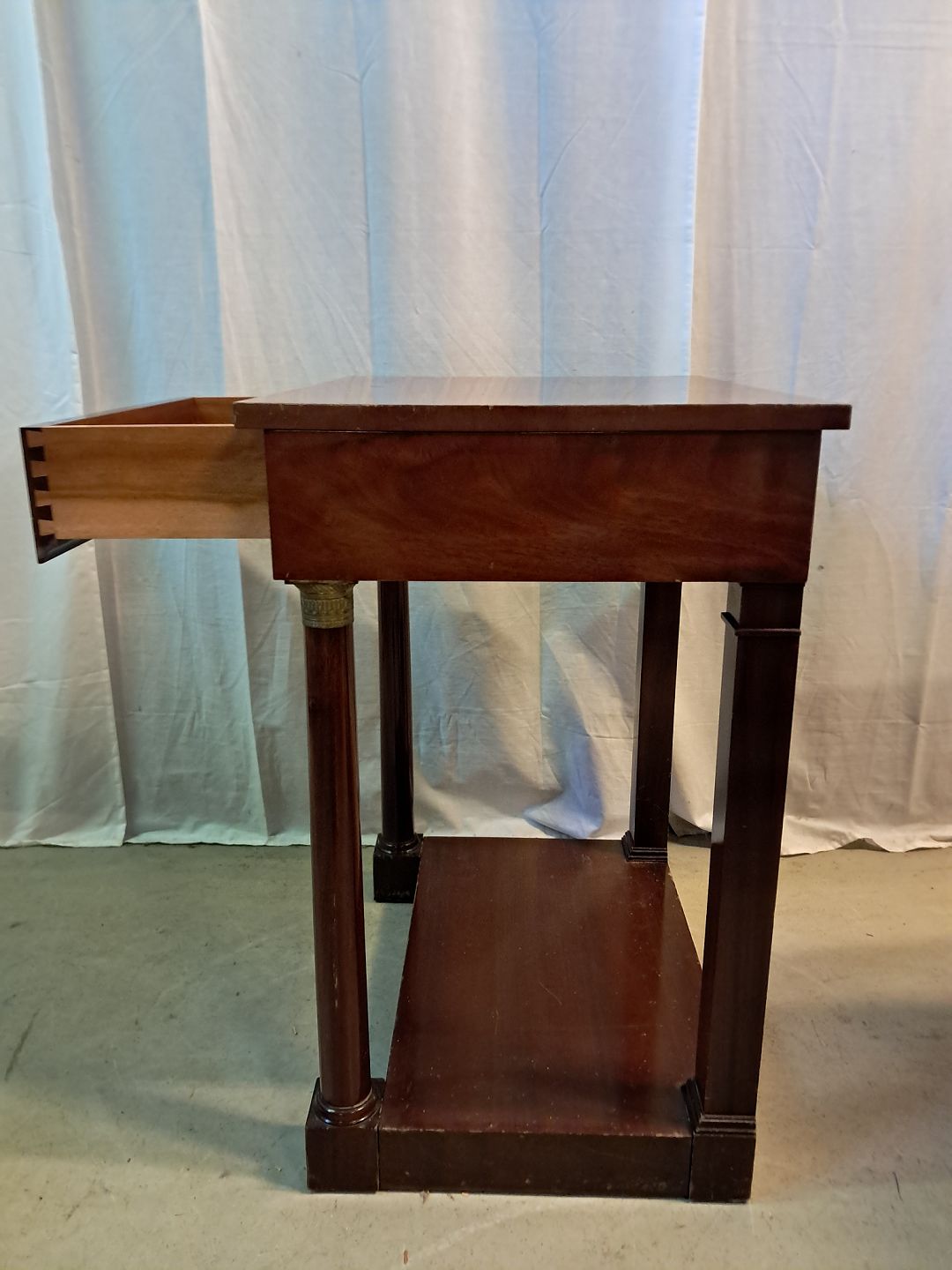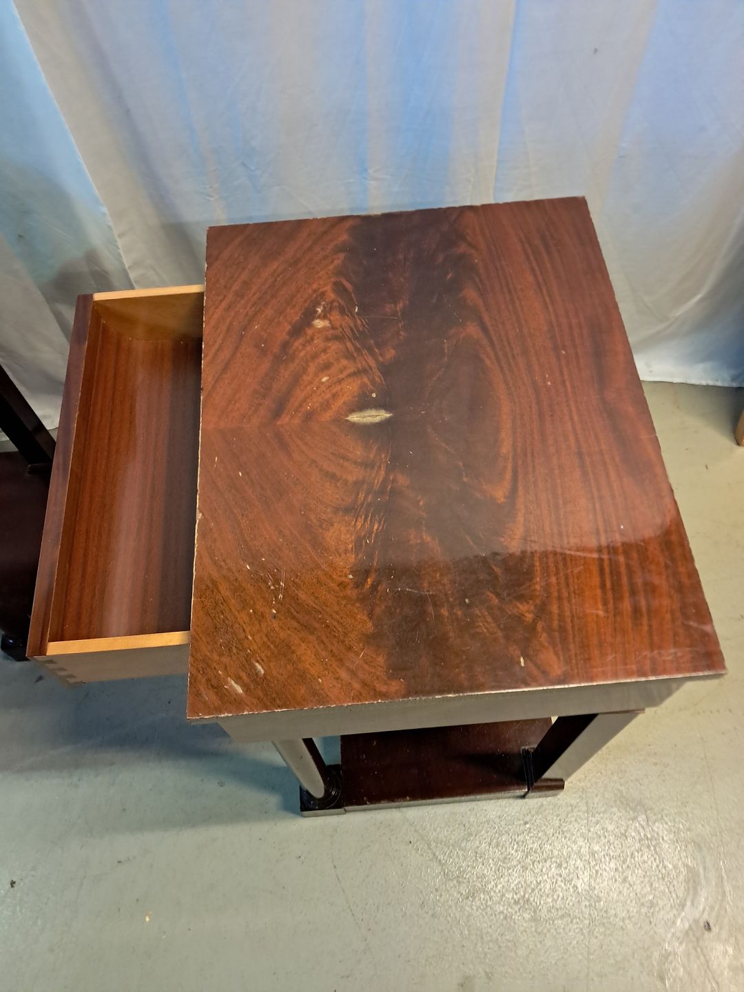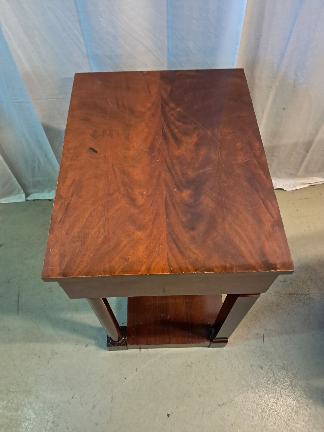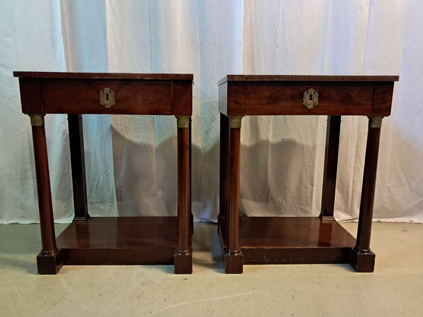 2 Søjleborde i fineret mahogni, fra 1910erne.