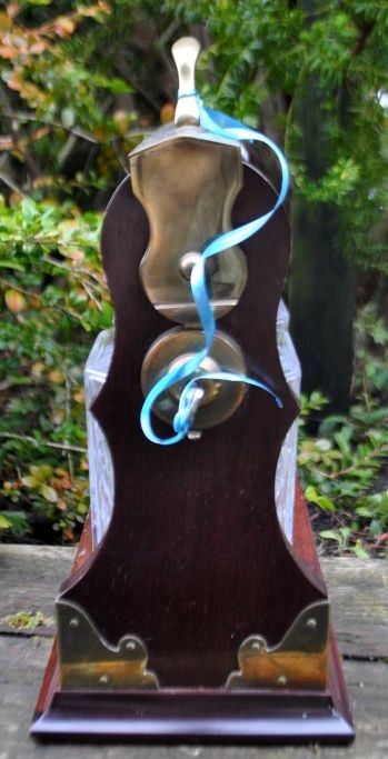 Tantalus med to karafler af krystal med propper. England. 19. årh. Mahogni. Messing håndtag og -beslag. Åbning ved håndtag med lås og nøgle. H: 32,5 cm. L: 29 cm.