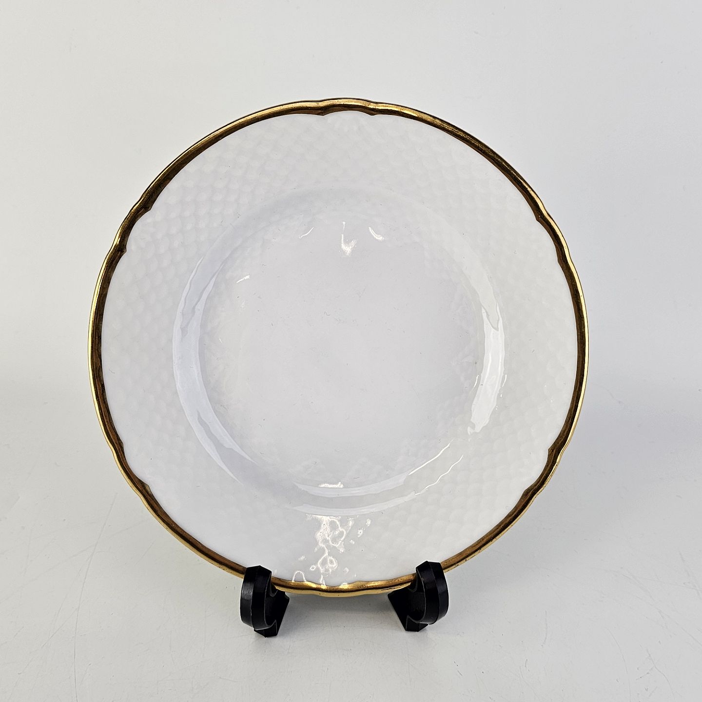 Service i lyst porcelæn med skælform og gylden kant