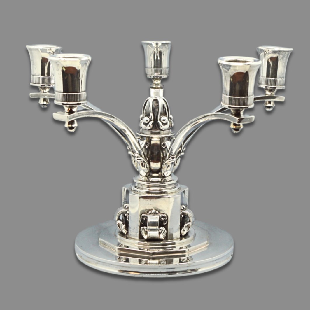 Evald Nielsen; Five-armed candlestick in silver