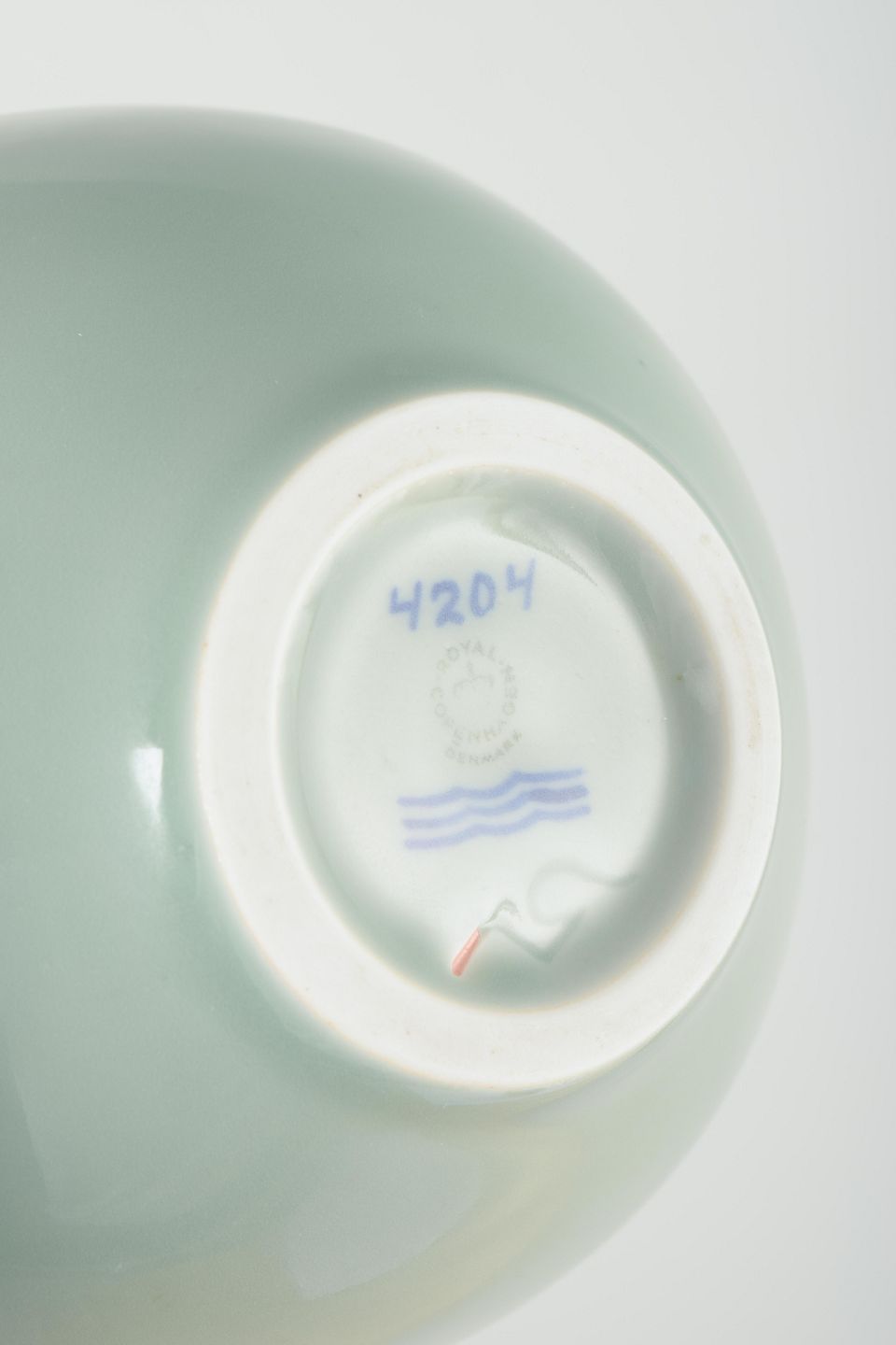 Nils Thorsson (1898–1975) var en af Royal Copenhagens mest betydningsfulde designere. Hans arbejde spænder fra naturalistiske dekorationer til enkle, funktionalistiske former. I 1940’erne eksperimenterede han med glasurer og overflader inspireret af klassisk asiatisk keramik, som i denne smukke celadonglasur.