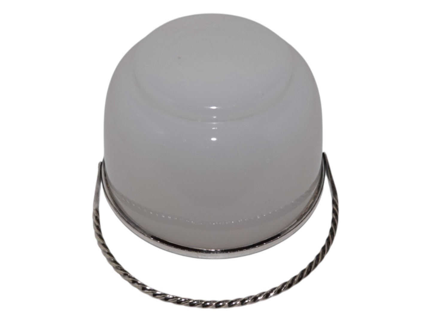 Kandisskål i hvidt opalineglas med sølvplet hank