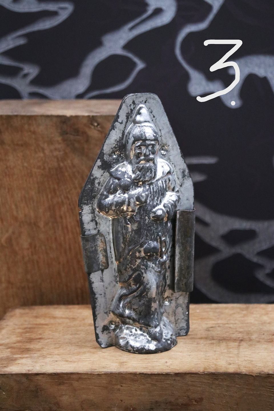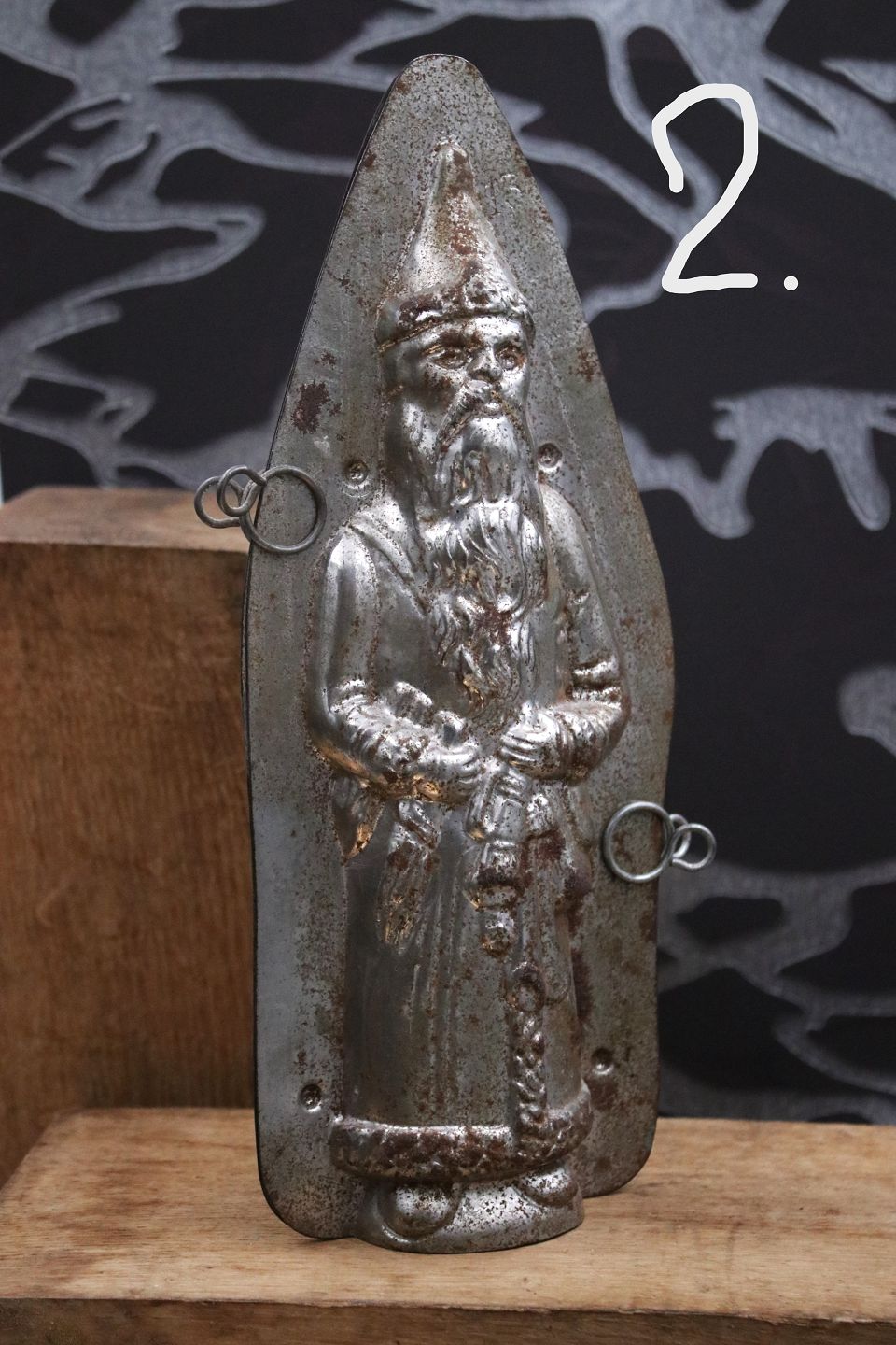 Dekorative , gamle chokoladeforme af julemænd lavet i metal med en rigtig fin patina.