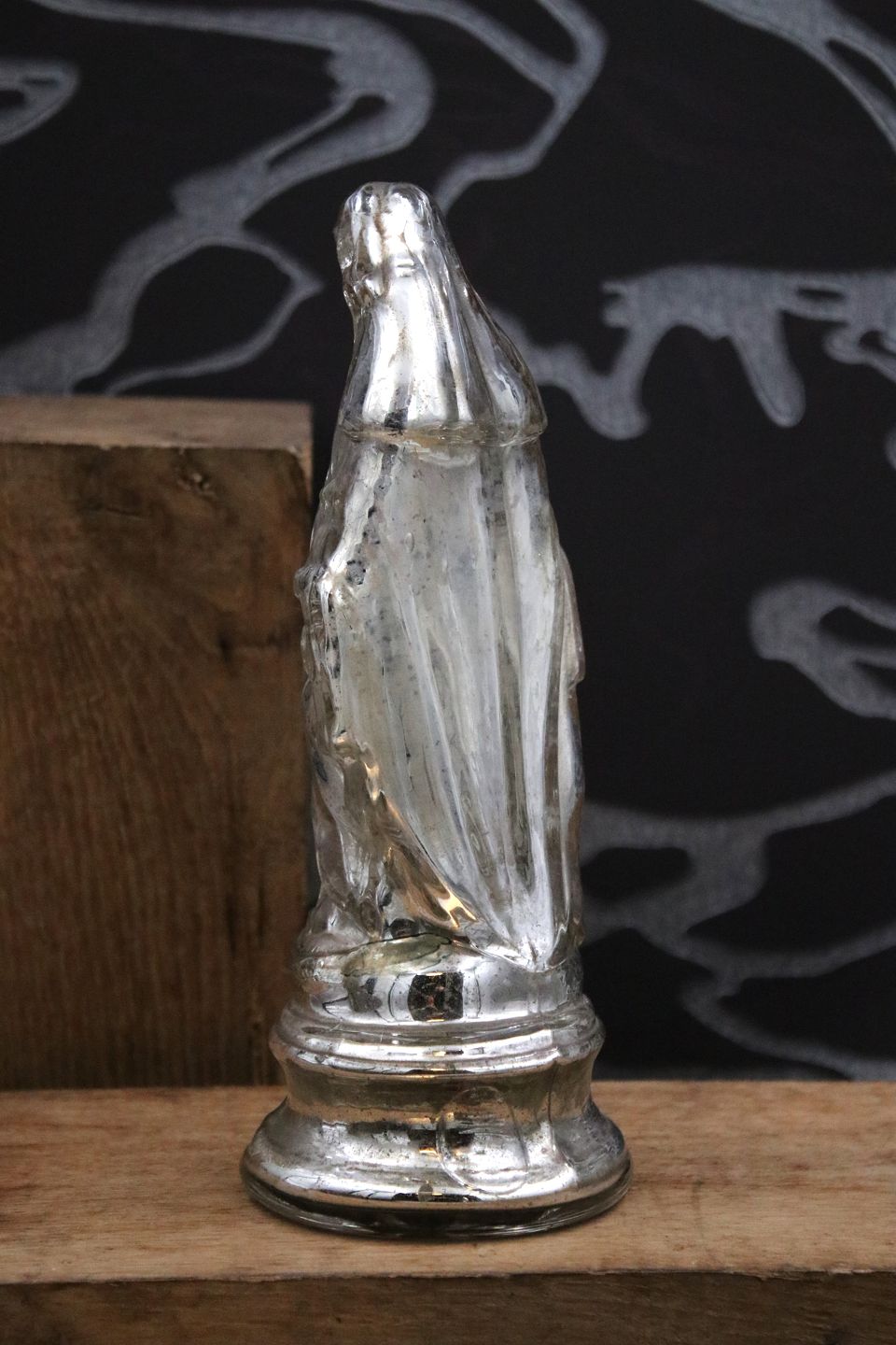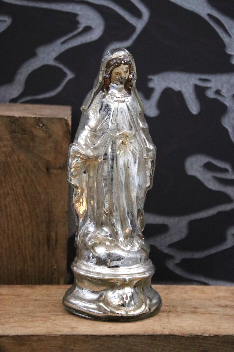 Antik 1800 tals Madonna figur i fattigmandssølv / Mercury glass.