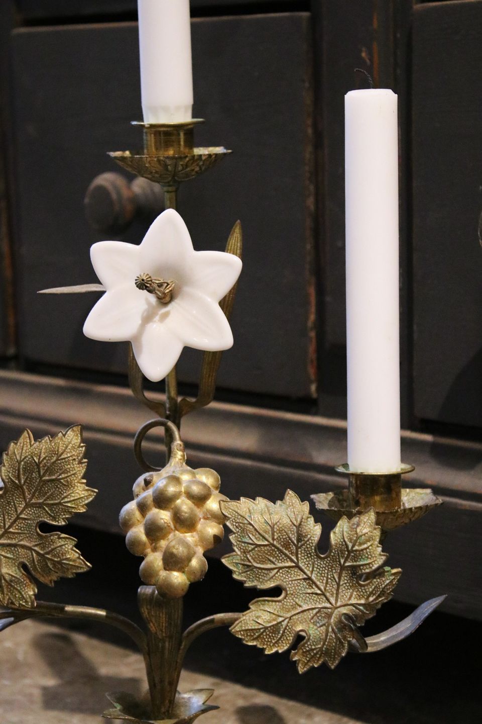 med plads til 3 stearinlys og dekoreret med 1 hvid opal glas blomst.