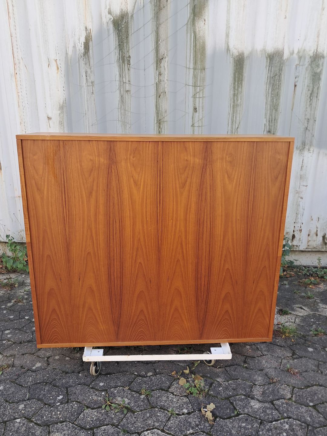 Reol i fineret teaktræ, fra 1970erne.