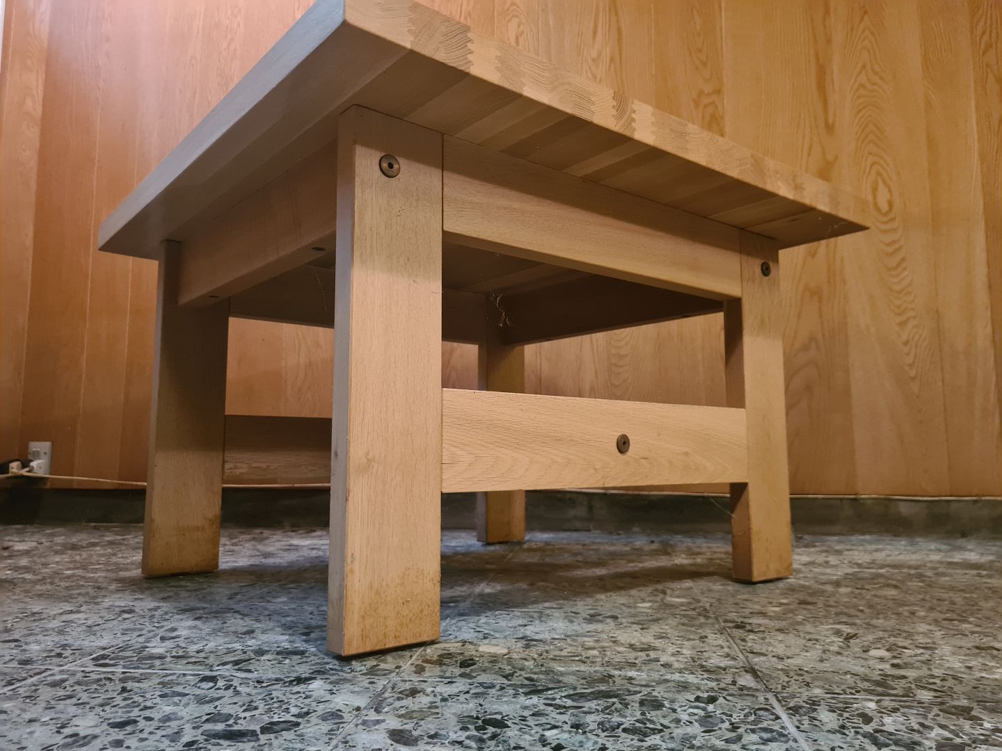 Kvadratisk lampebord fra 1970´erne i massiv eg. Formgivet hos Laboremus i Viborg. Fremstår pænt og velholdt uden nævneværdige brugsspor.