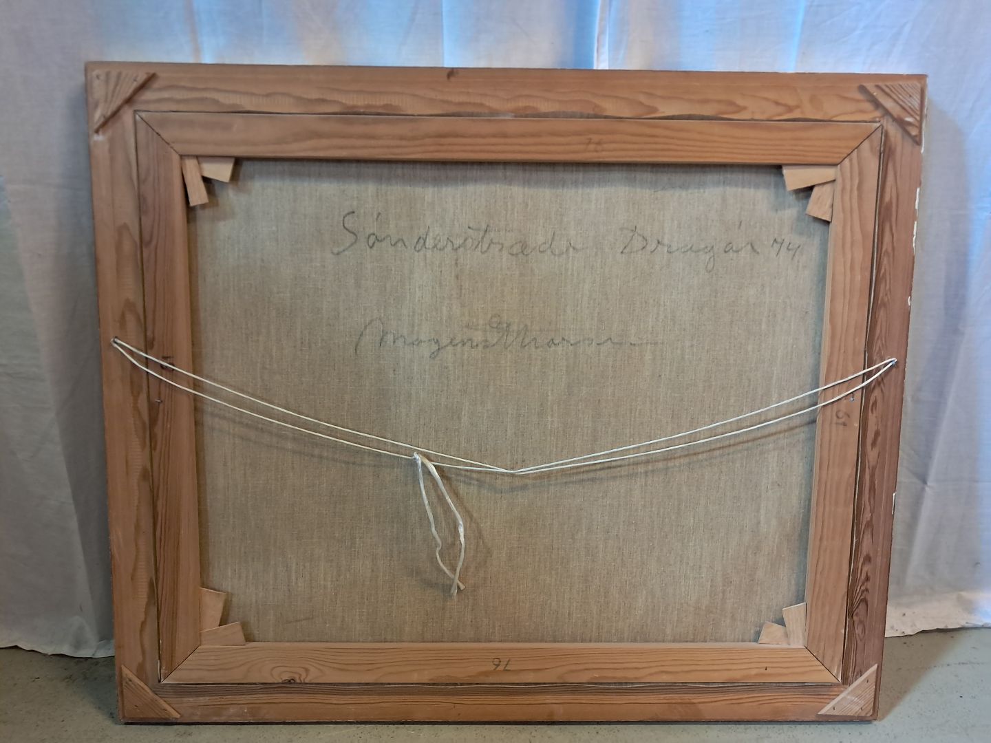 Maleri af Dragør By i guldmalet ramme, af : Mogens Amdi Thorsen (1924-2016)