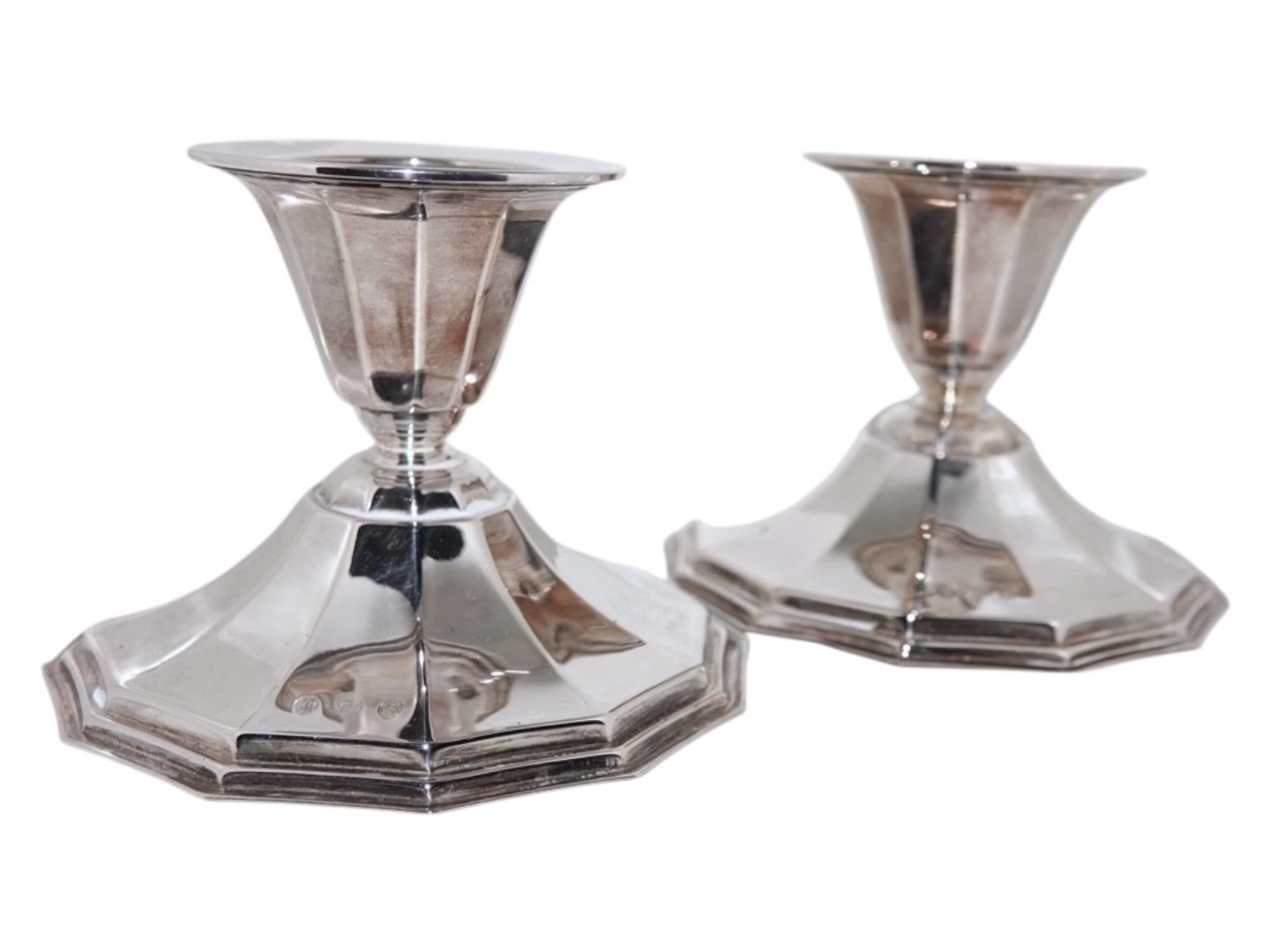 Cohr sølv, par moderne, kantede lysetager fra 1944.