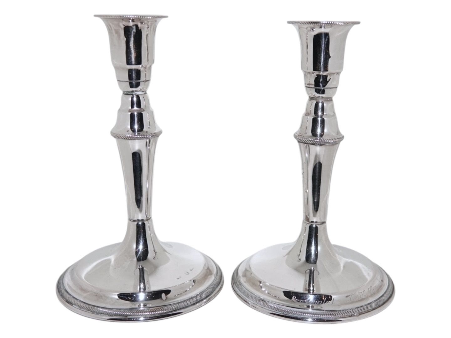 En lysestage har indgravering på bundkanten "PERSONALET FHL 1-11-1959", se to nærfotos. Ellers fin stand.