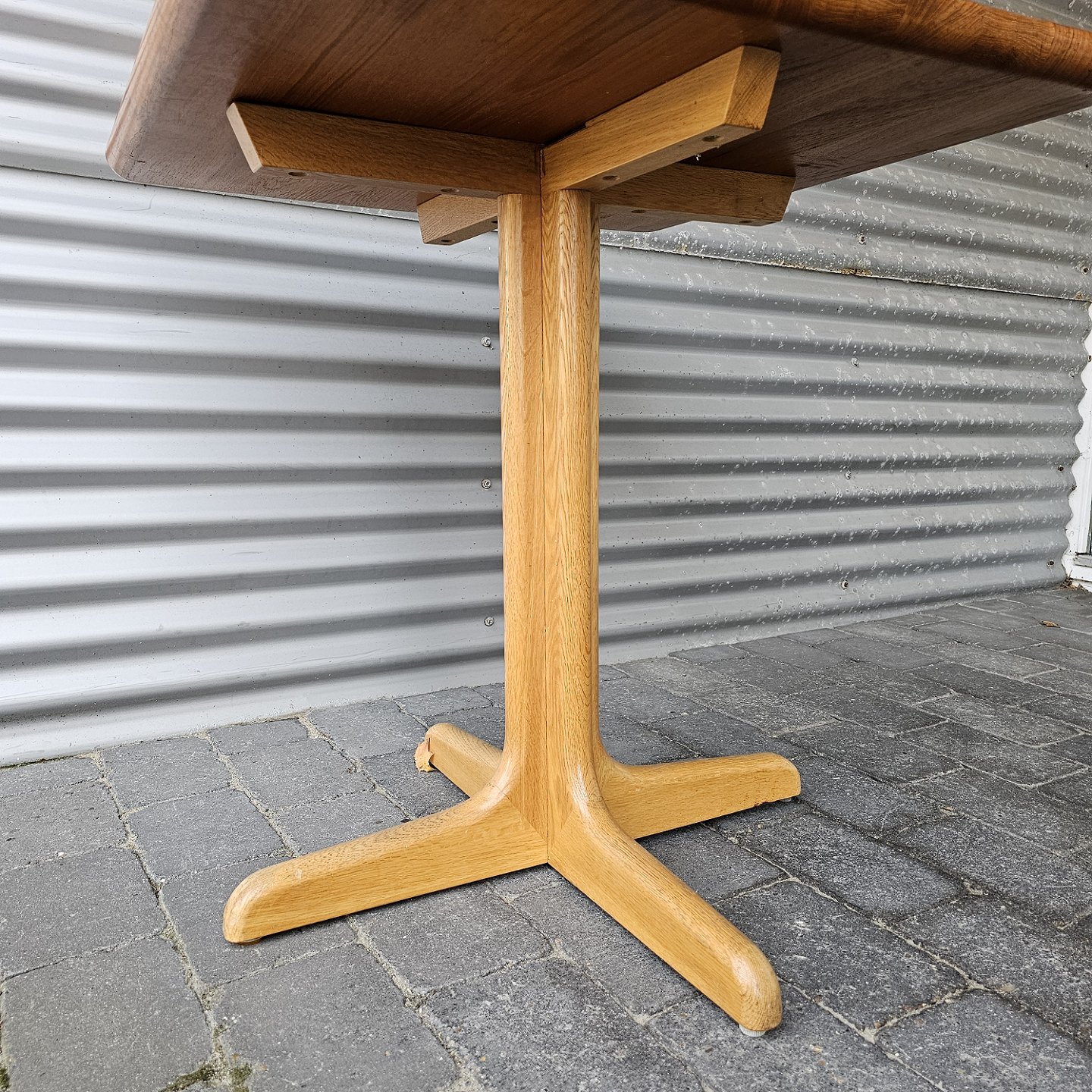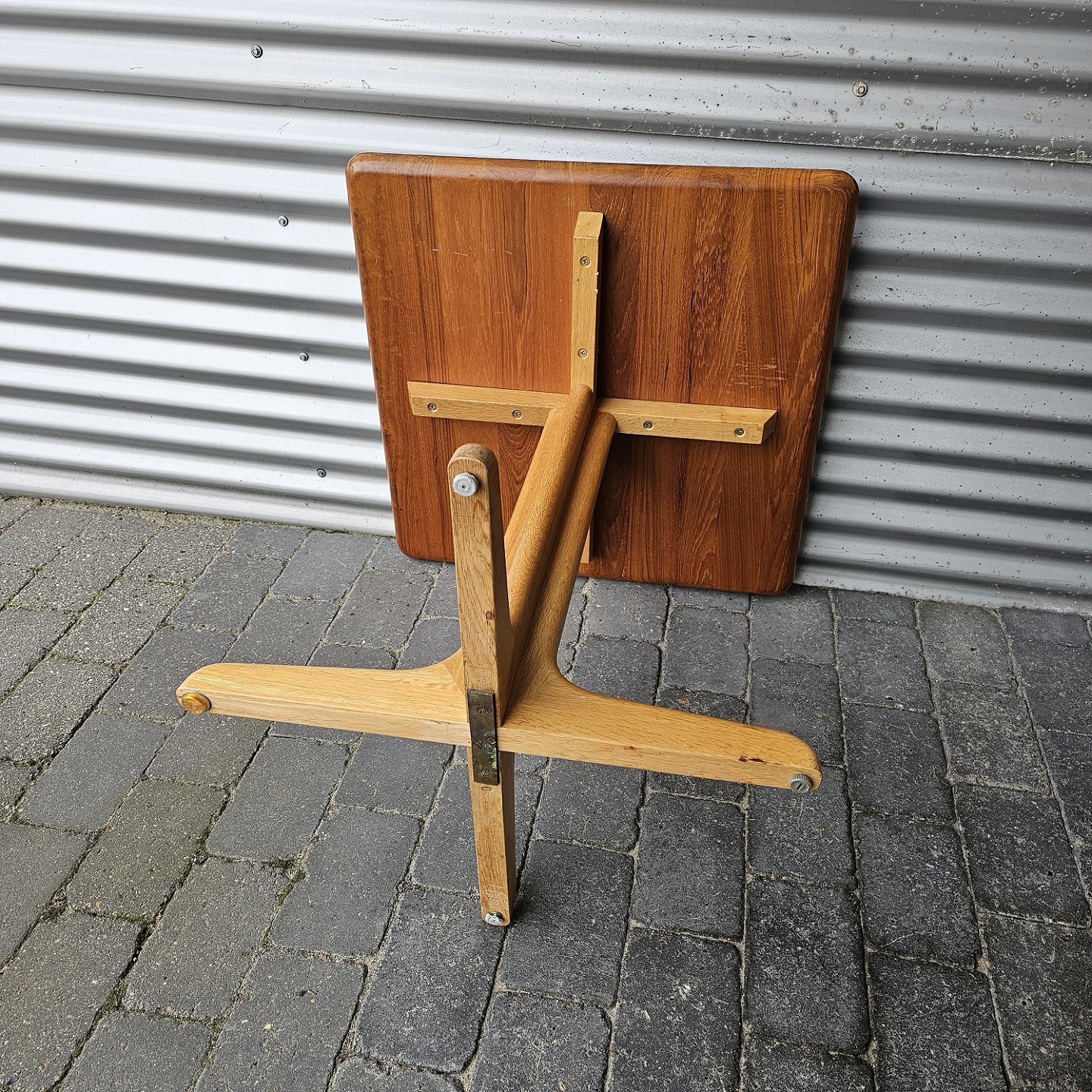 Kvadratisk spisebord i massiv teak med firepasfod i egetræ
