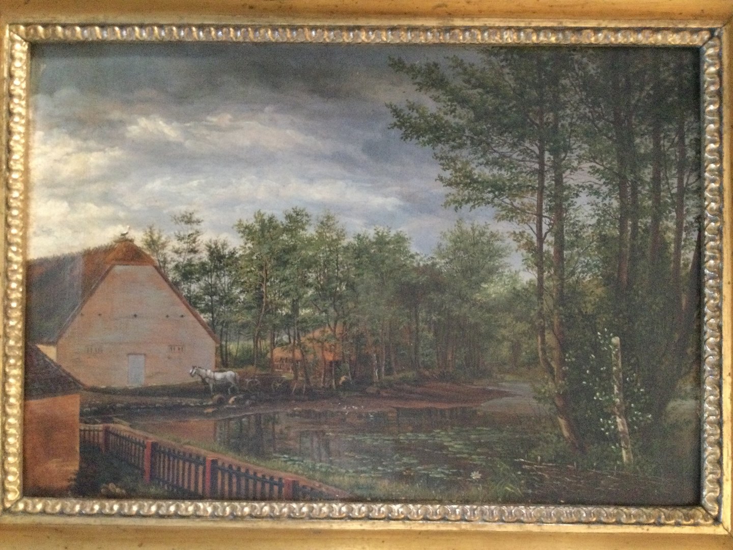 Maleri af Elisabeth Sofie Seidelin 1872 - - Landskab med ejendom og heste i fold.