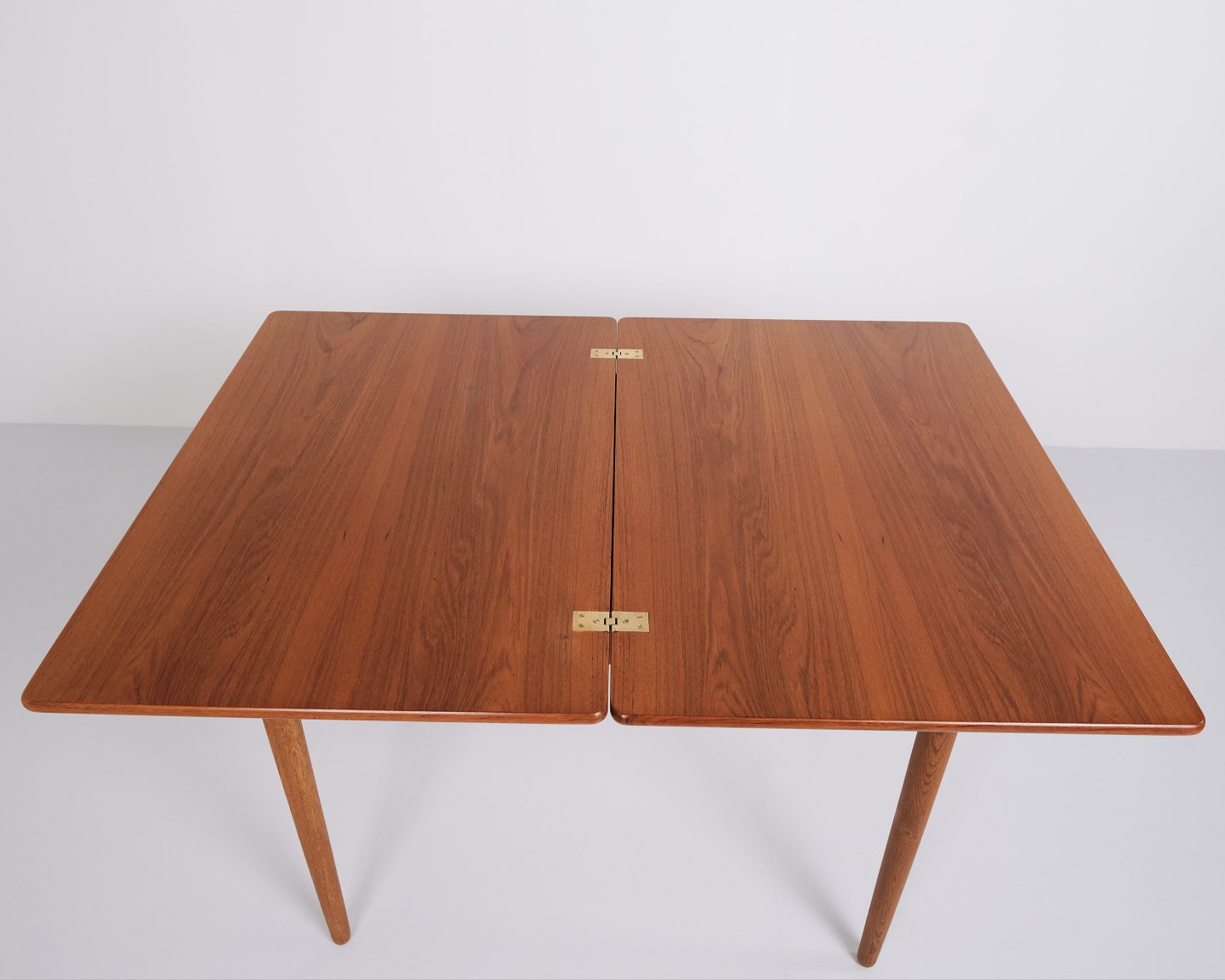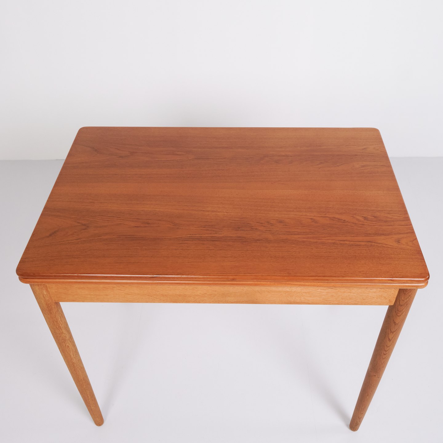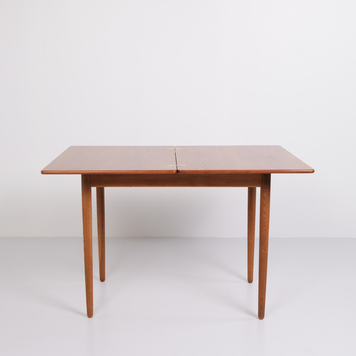 Hans J. Wegner spise/spillebord for Andreas Tuck. Teak og eg, 1960’erne. Indbygget opbevaring.
