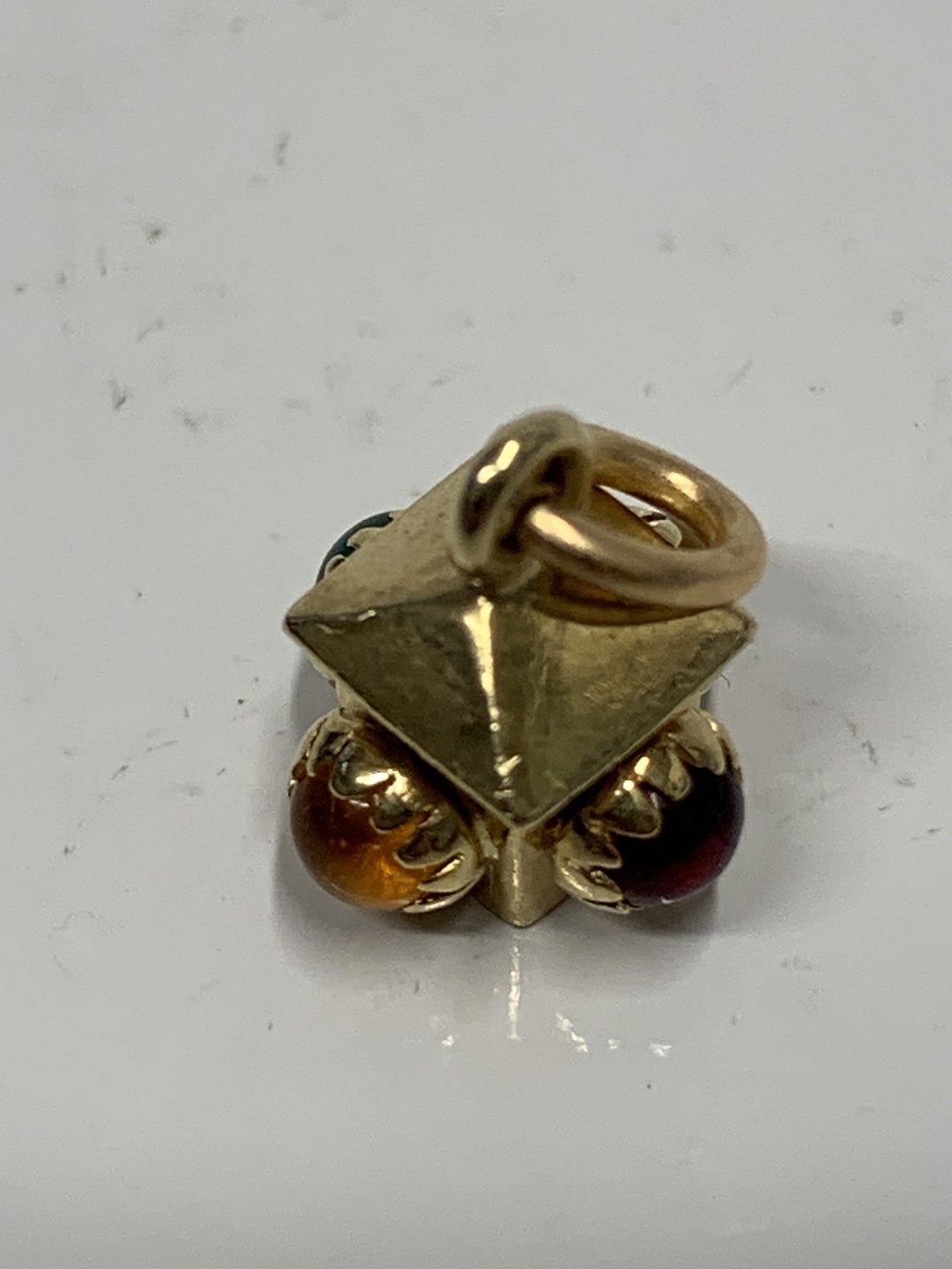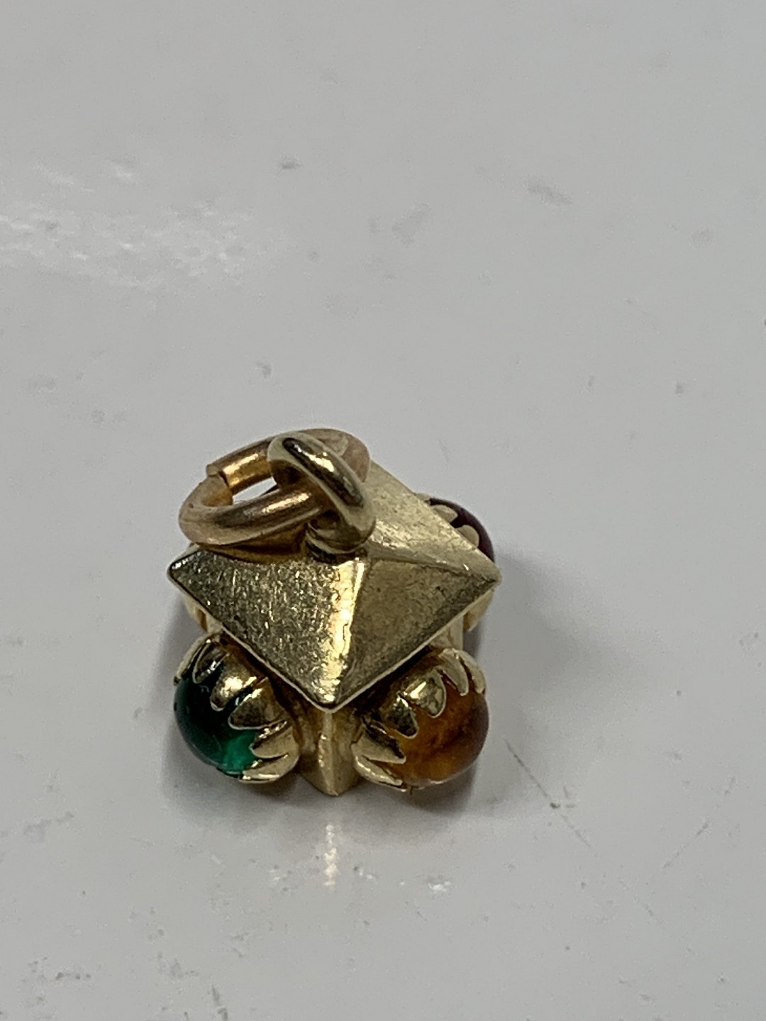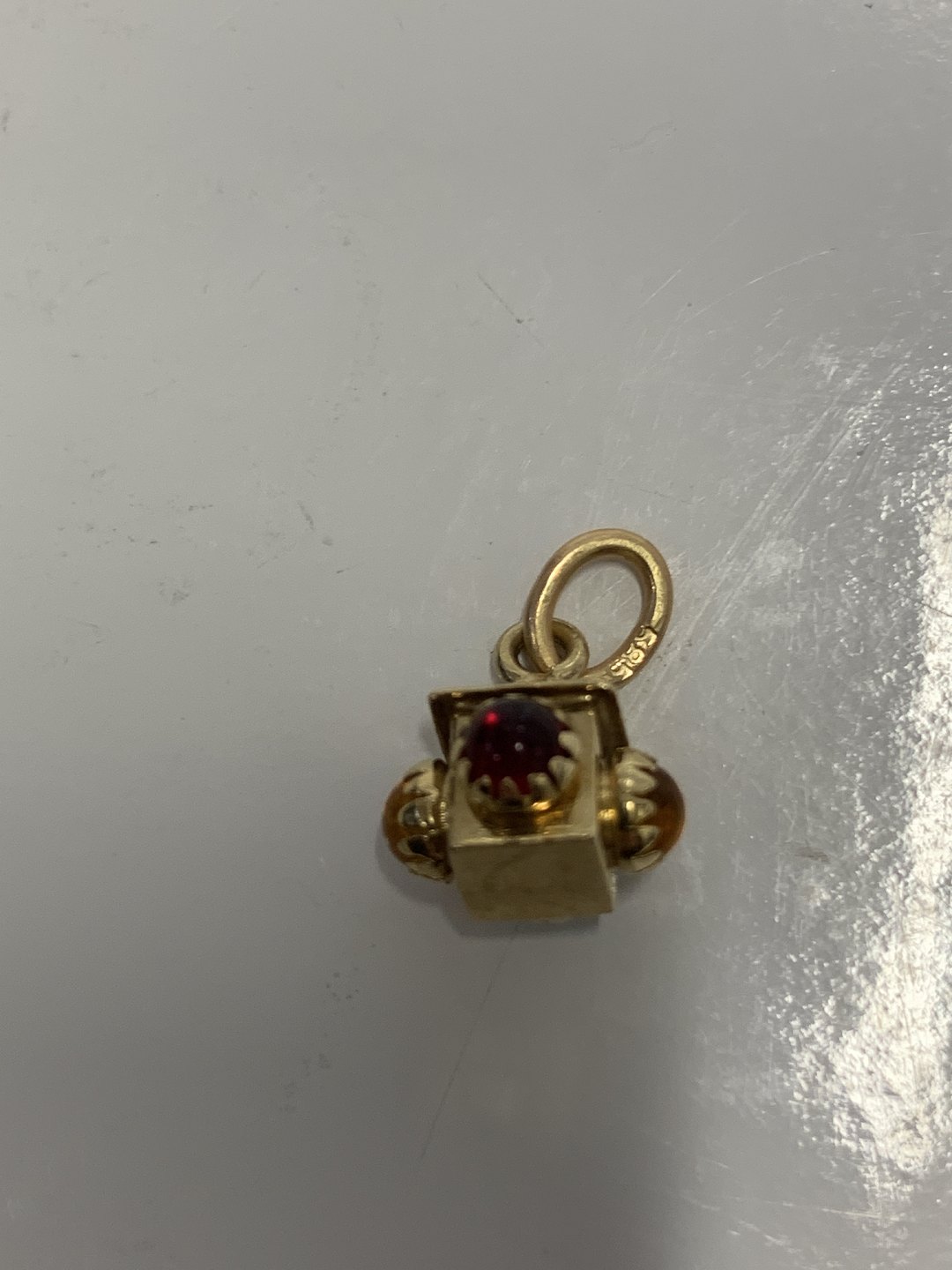 Lampe med rød/gul og grøn sten Charms / Vedhæng i 14 karat