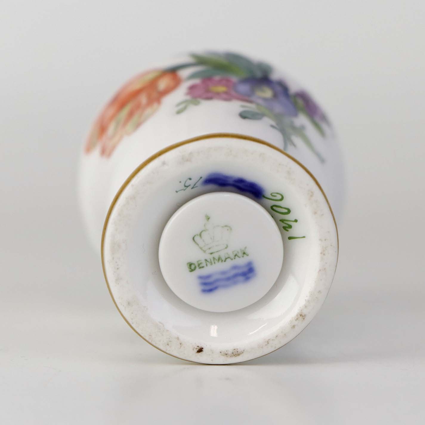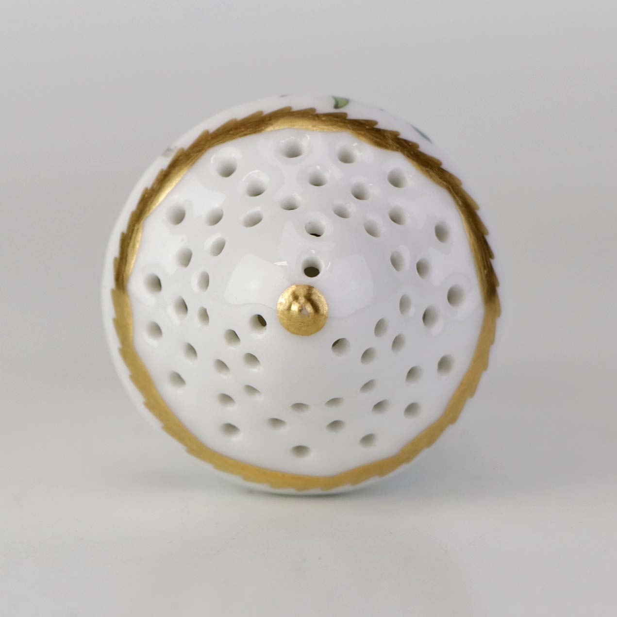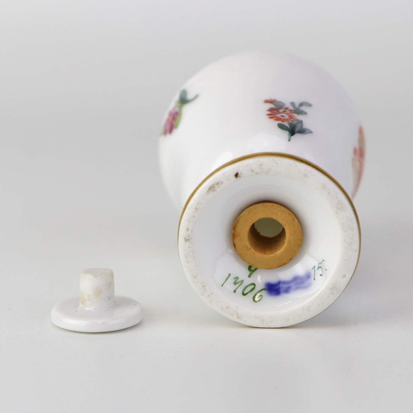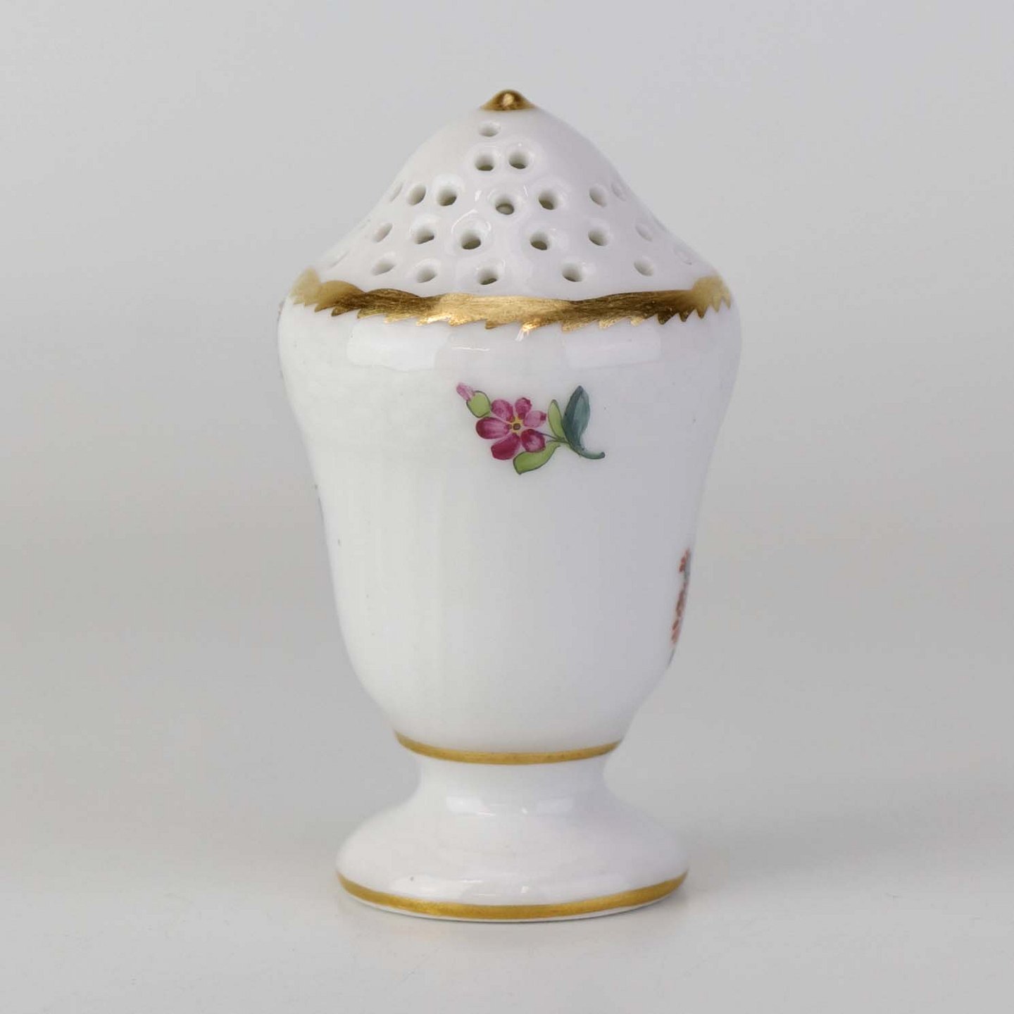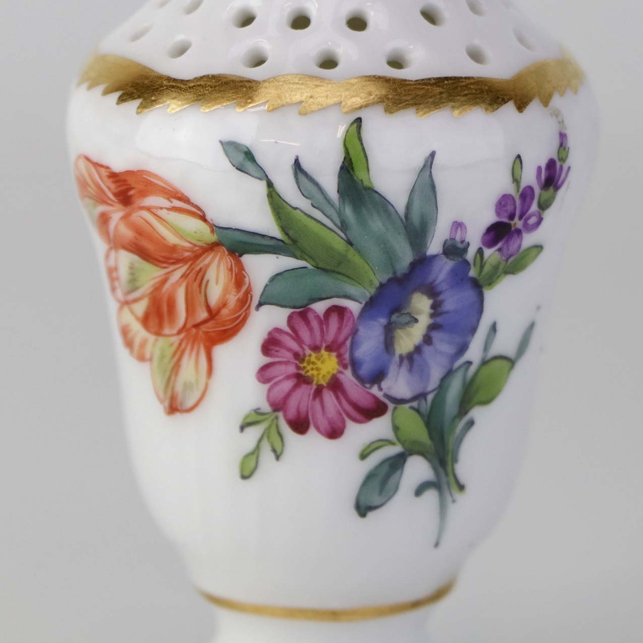 Saltbøsse i kongelig porcelæn fra stellet Saksisk Blomst. Strøen har prop i porcelæn. Nr. 1406