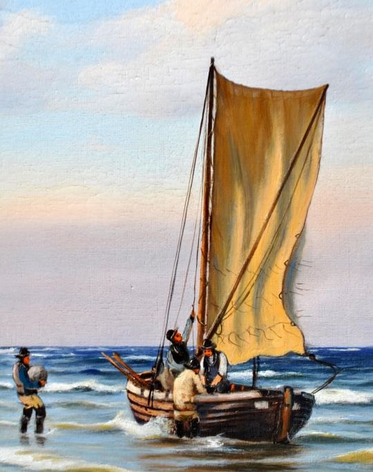 Neumann, Johan (1860 - 1940) Danmark: En fiskerbåd på kysten.