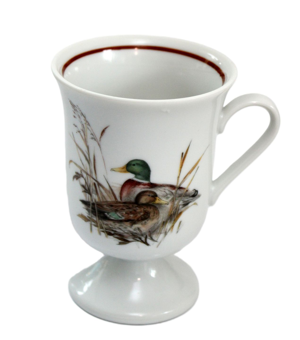 Jagtstellet designet af Mads Stage for Imerco. Irish Coffee krus på fod. Gråand. Højde 11 cm. Diameter 8 cm. Pris: 175 kr. stk. Lager: 3