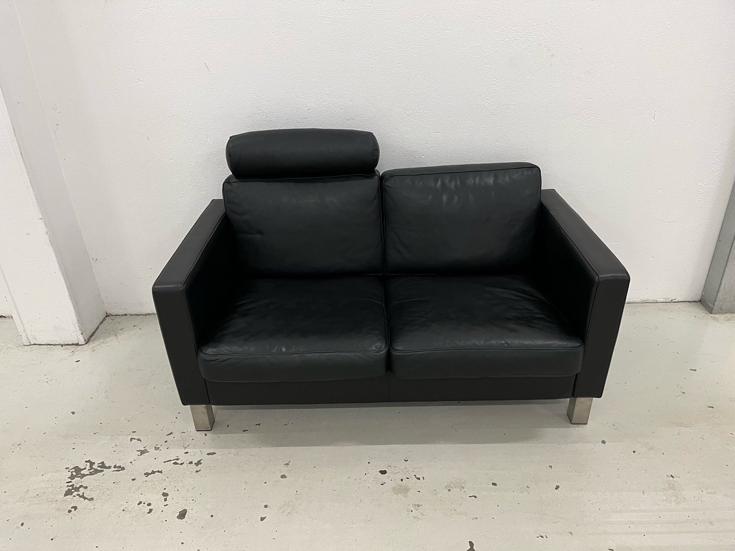 Mogens Hansen MH321 2 Pers. Sofa i sort prestige læder og med ben i børstet stål. Nypris 35.403,-
