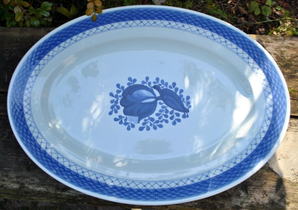 Royal Copenhagen, Trankebar, ovalt fad, 929, 20. årh. København, Danmark. Stemplet. L. 38 cm. B.: 27 cm.  1. Sortering. NB: 2 stk. på lager.