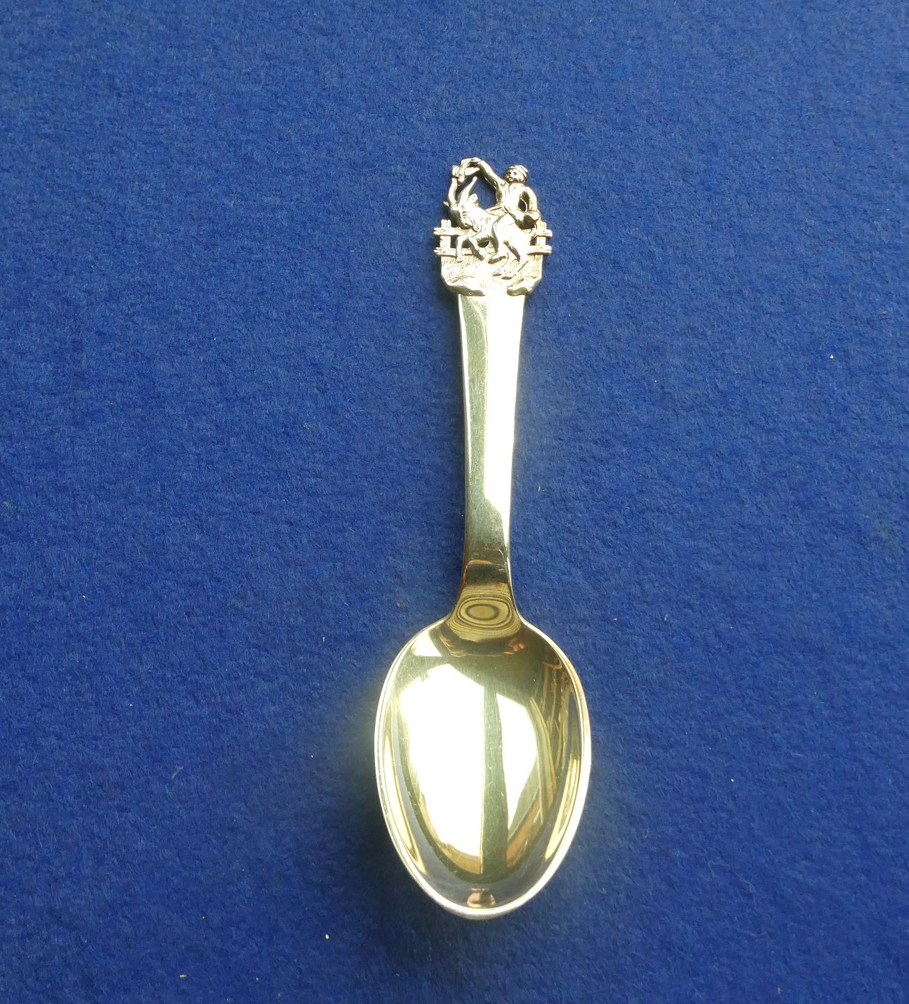 H.C. Andersen barnebestik i tretårnet forgyldt sølv med Klods Hans.