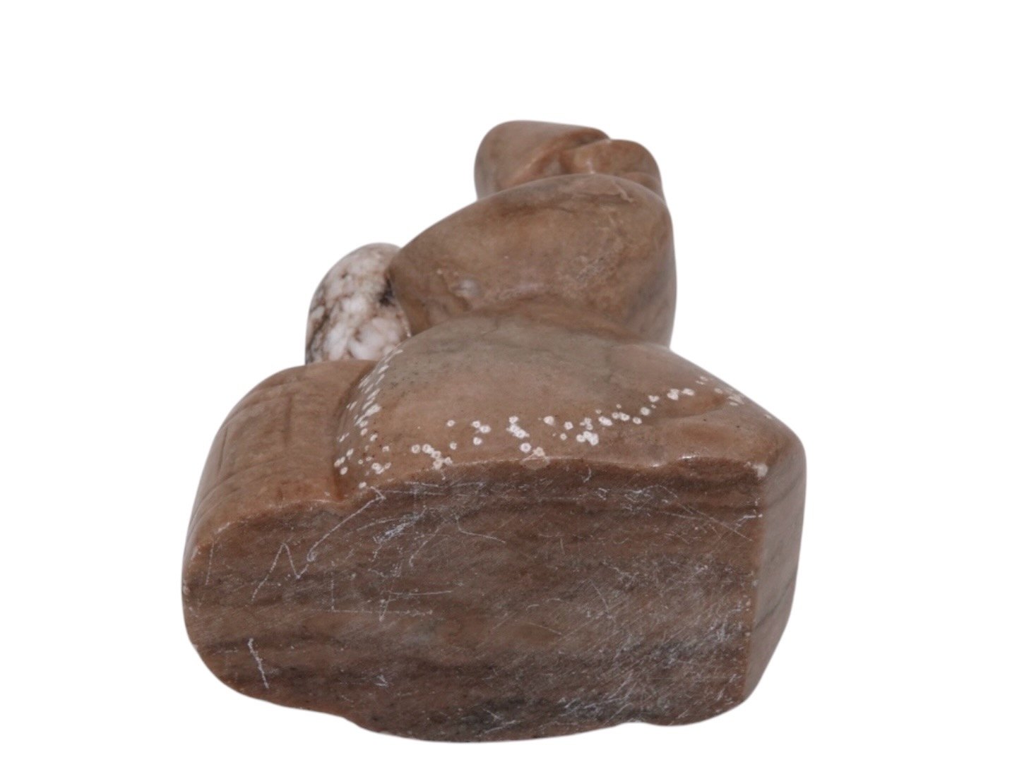 Grønlandica lille Iniut figur i fedtsten, mand fra Grønland med fisk.