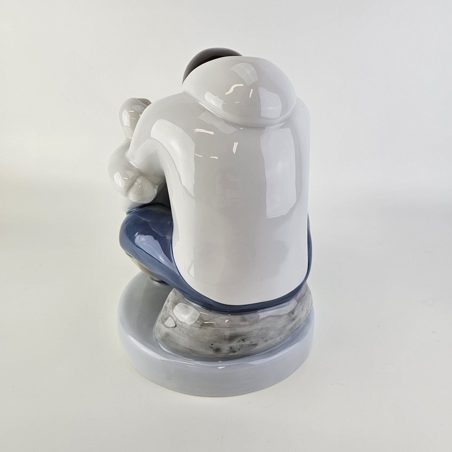 Figur i porcelæn med motiv af en grønlænder med et barn
