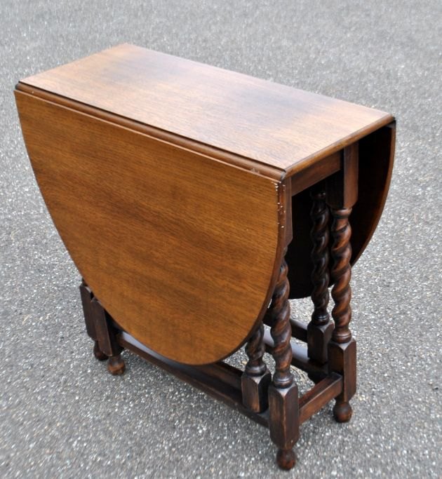 Engelsk gateleg bord i ege træ, 19. årh. Med drejede ben. H.: 74 cm. B.: 75,5 cm. D: 30 cm. Udslået: 133 cm.
