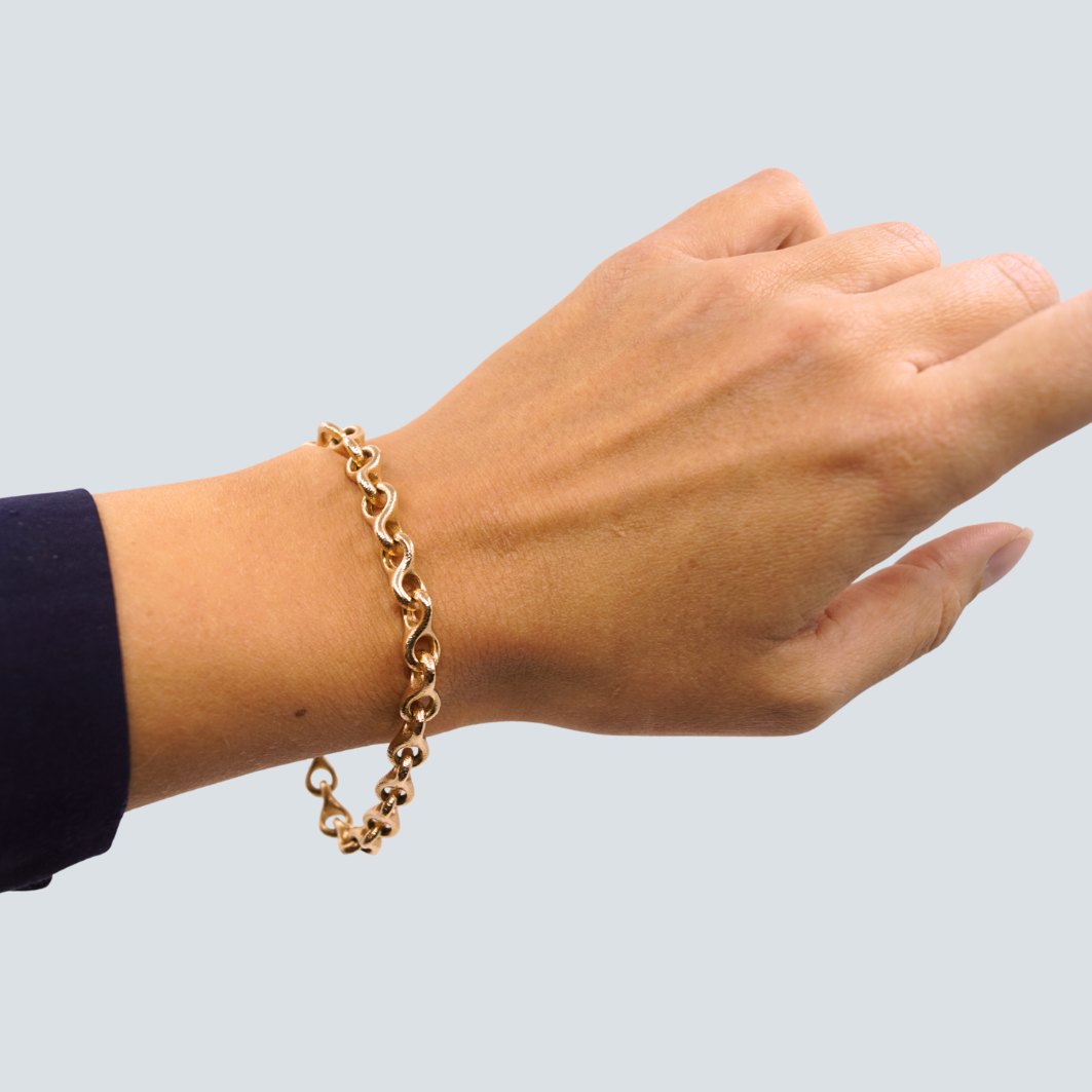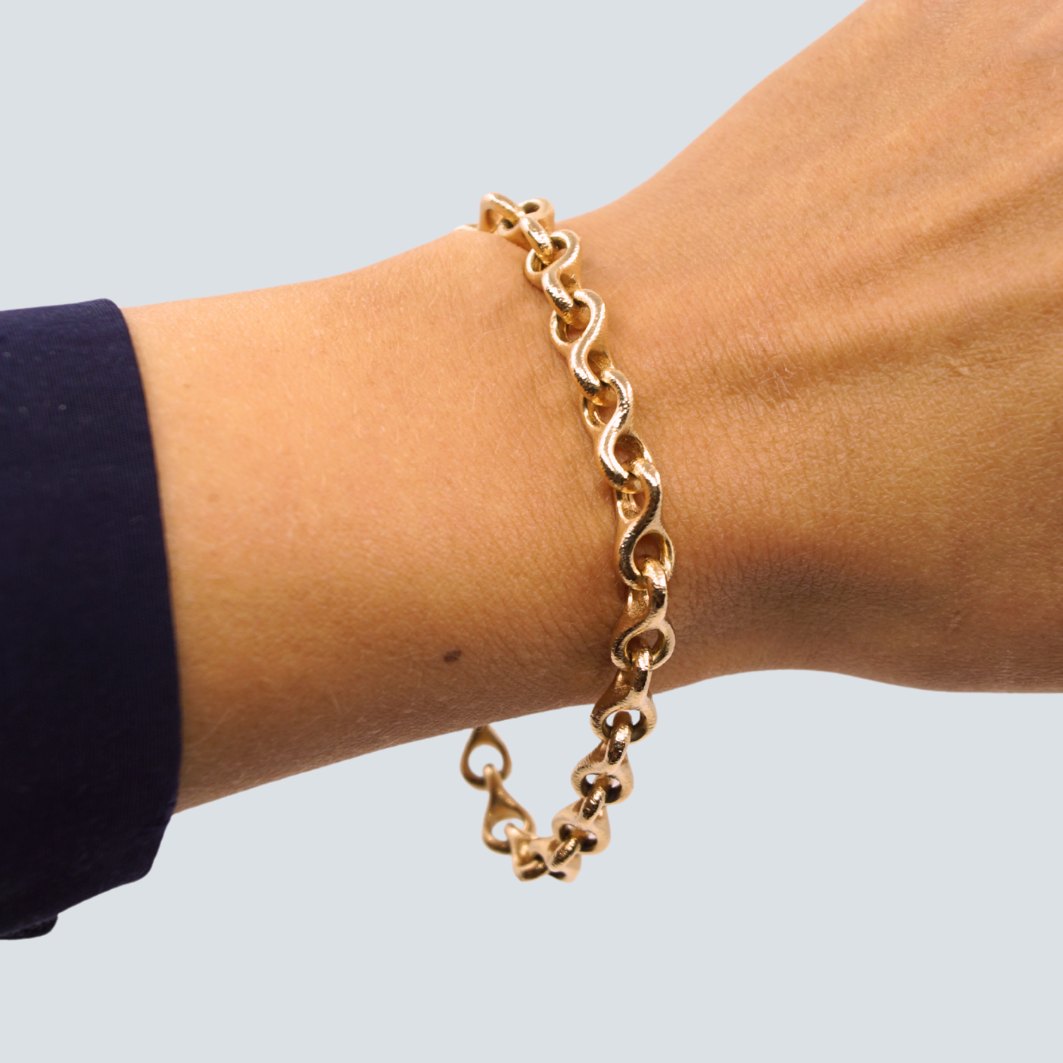 Ole Lynggaard 8-tals armbånd af 14 kt. guld. Inklusiv kuglelås i 18 kt. hvidguld. Kuglelåsen er prydet med rødguld og diamanter.