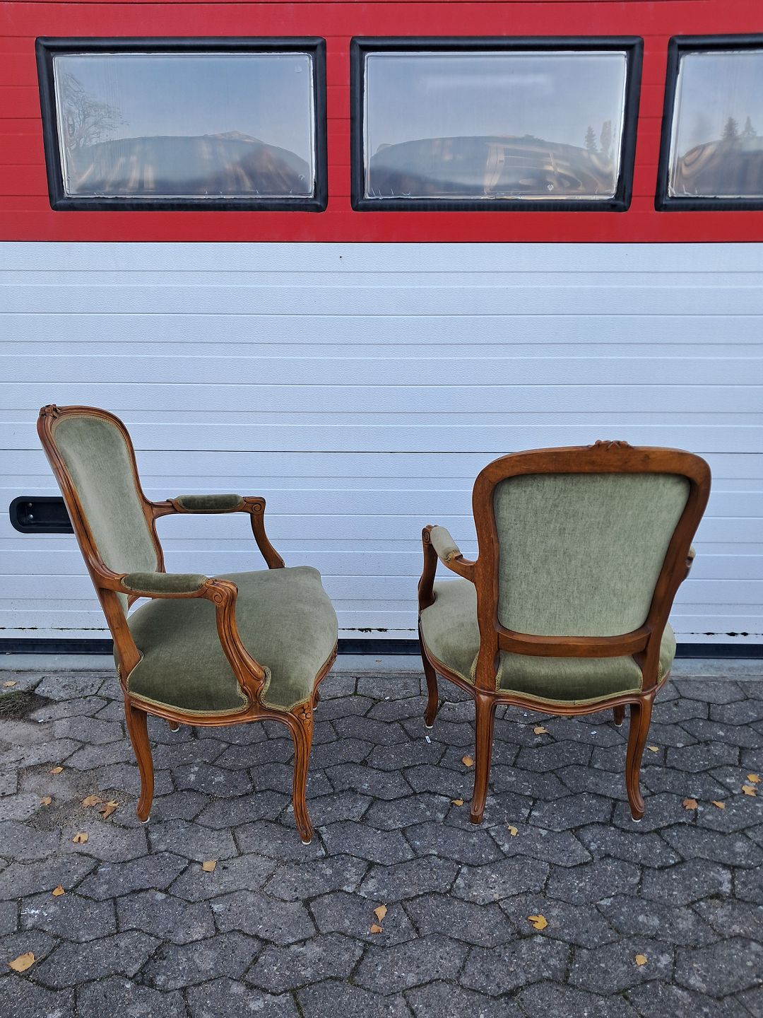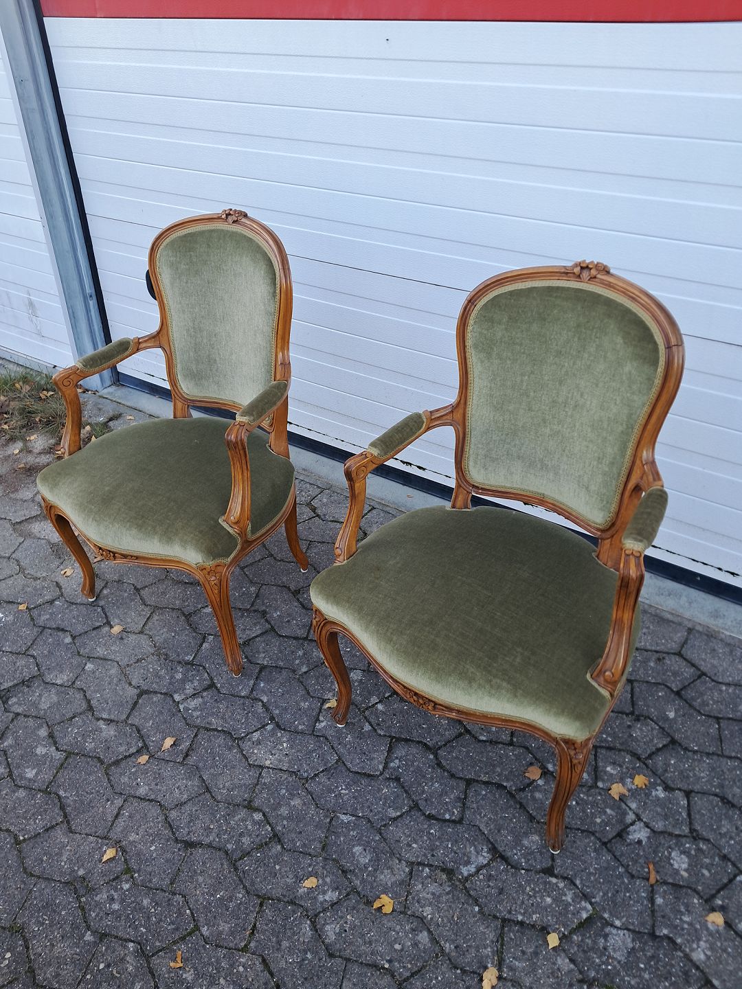 2 Rokokostole i massivt bøgetræ med velourbetræk, fra 1980erne.