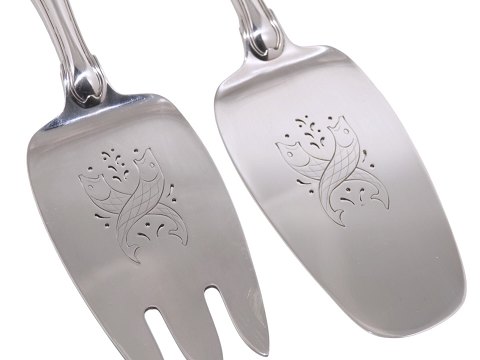 Georg Jensen sterling silver Old Danish (Dobbeltriflet), large fish serving set.