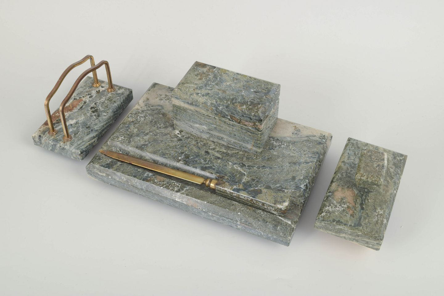 Svensk skrivebordssæt i marmor, midten af 1900-tallet.