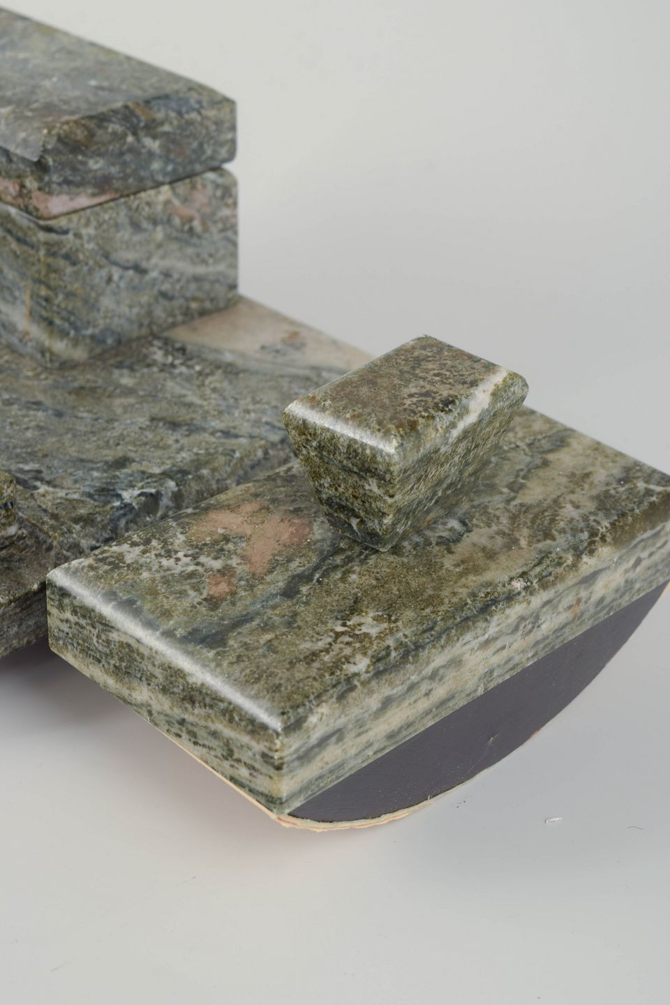I 1950’ernes og 60’ernes Skandinavien blev kontortilbehør og skrivebordssæt i natursten populære som udtryk for både funktion og luksus. Kombinationen af marmorens kølige elegance og det modernistiske formsprog gjorde disse objekter til eftertragtede elementer i den velindrettede bolig eller det repræsentative kontor.